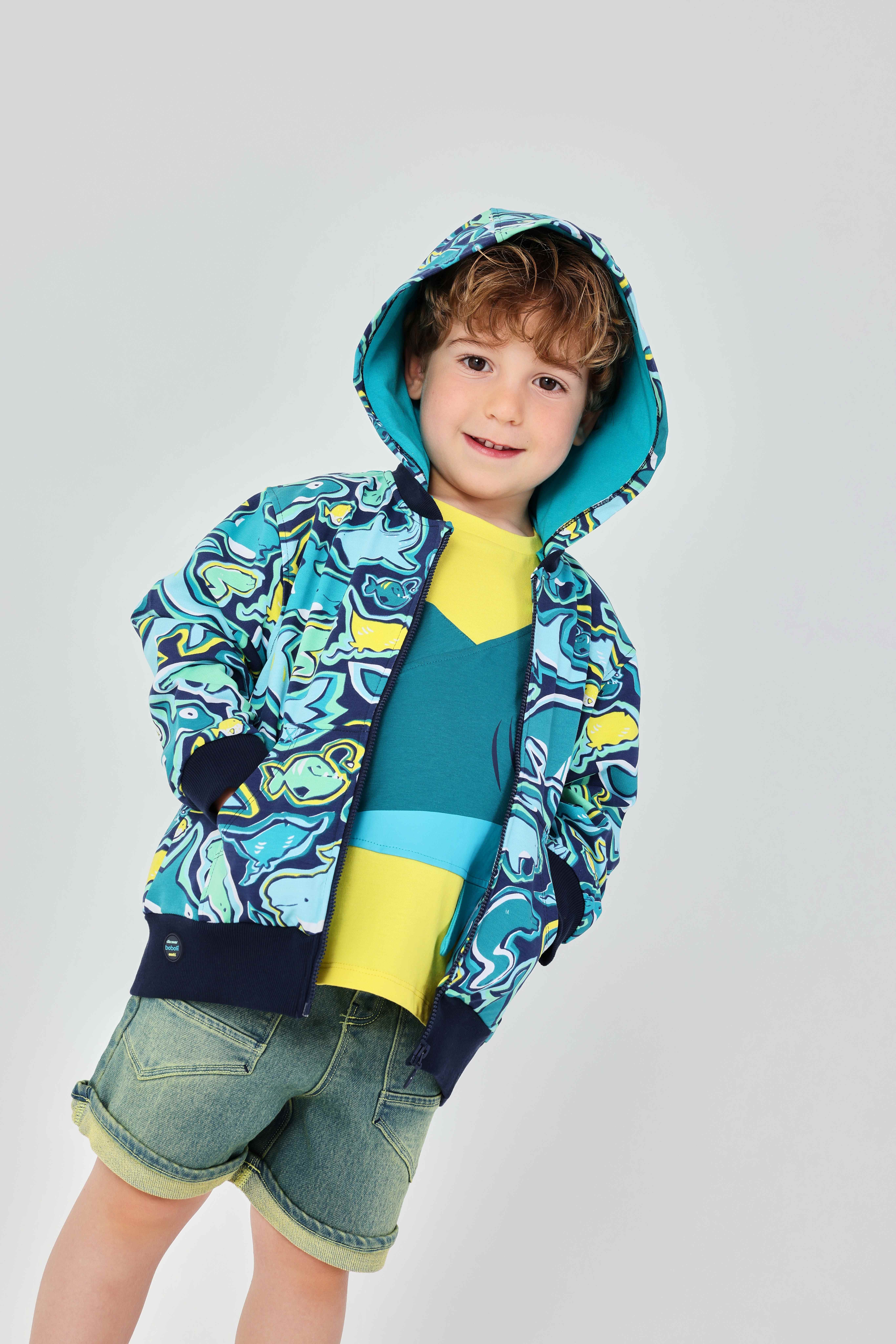Chlapecká lehká bunda s kapucí. Lehká bunda chrání před větrem, sportovní vzhled a kapuce z ní dělají ideální volbu na jaro a léto.