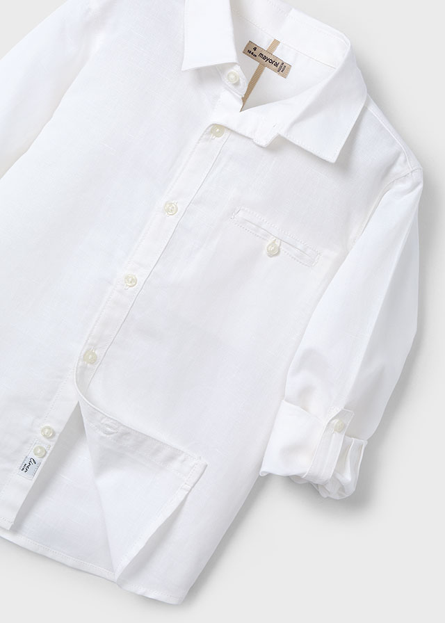 Lehká a stylová košile pro malé gentlemany. Elegantní chlapecká košile od značky MAYORAL v bílé barvě. Vyrobena z kombinace bavlny a lnu, což zajišťuje lehkost a prodyšnost. Ideální volba pro formální příležitosti i každodenní nošení.