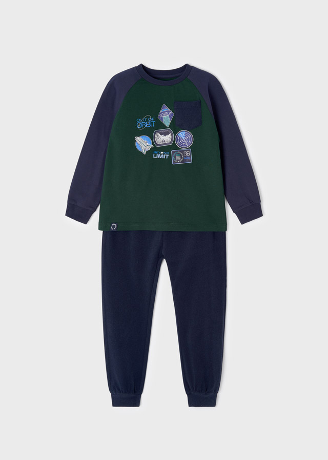 Dvoudílná souprava na spaní pro chlapce s tričkem a pletenými kalhotami, které jsou měkké a pohodlné.