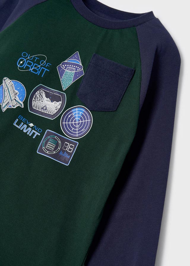 Tričko s dlouhým rukávem pro kluka. Kulatý výstřih. Motiv PLAY WITH záře ve tmě.