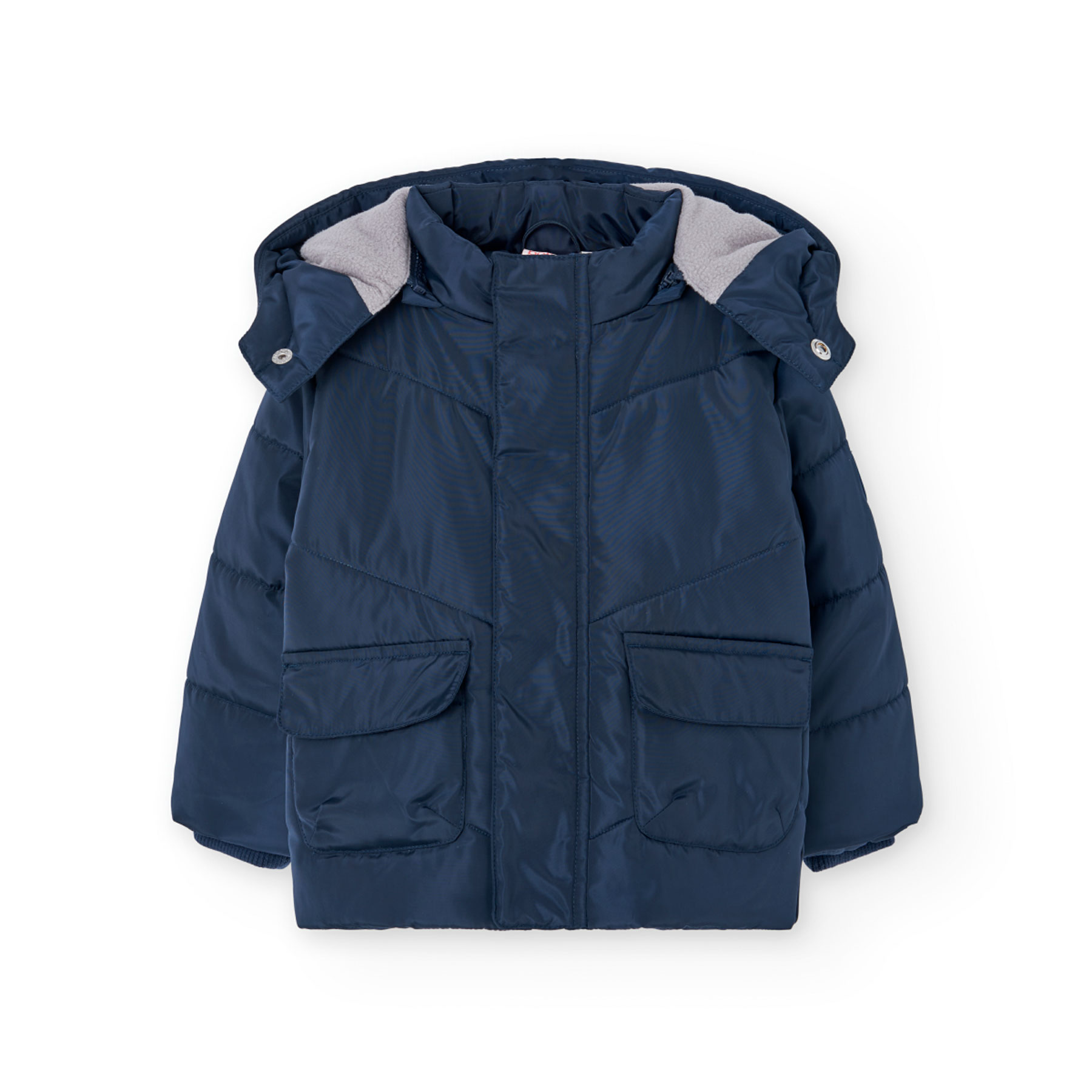 Teplá zimní bunda s kapucí. Teplá chlapecká bunda v námořnické modré barvě, ideální pro zimní dny. Praktická odepínací kapuce a měkká fleecová podšívka zajistí maximální pohodlí a ochranu před chladem. Velké kapsy na drobnosti a stylový sportovní střih z ní dělají perfektní volbu pro každodenní nošení i zimní dobrodružs