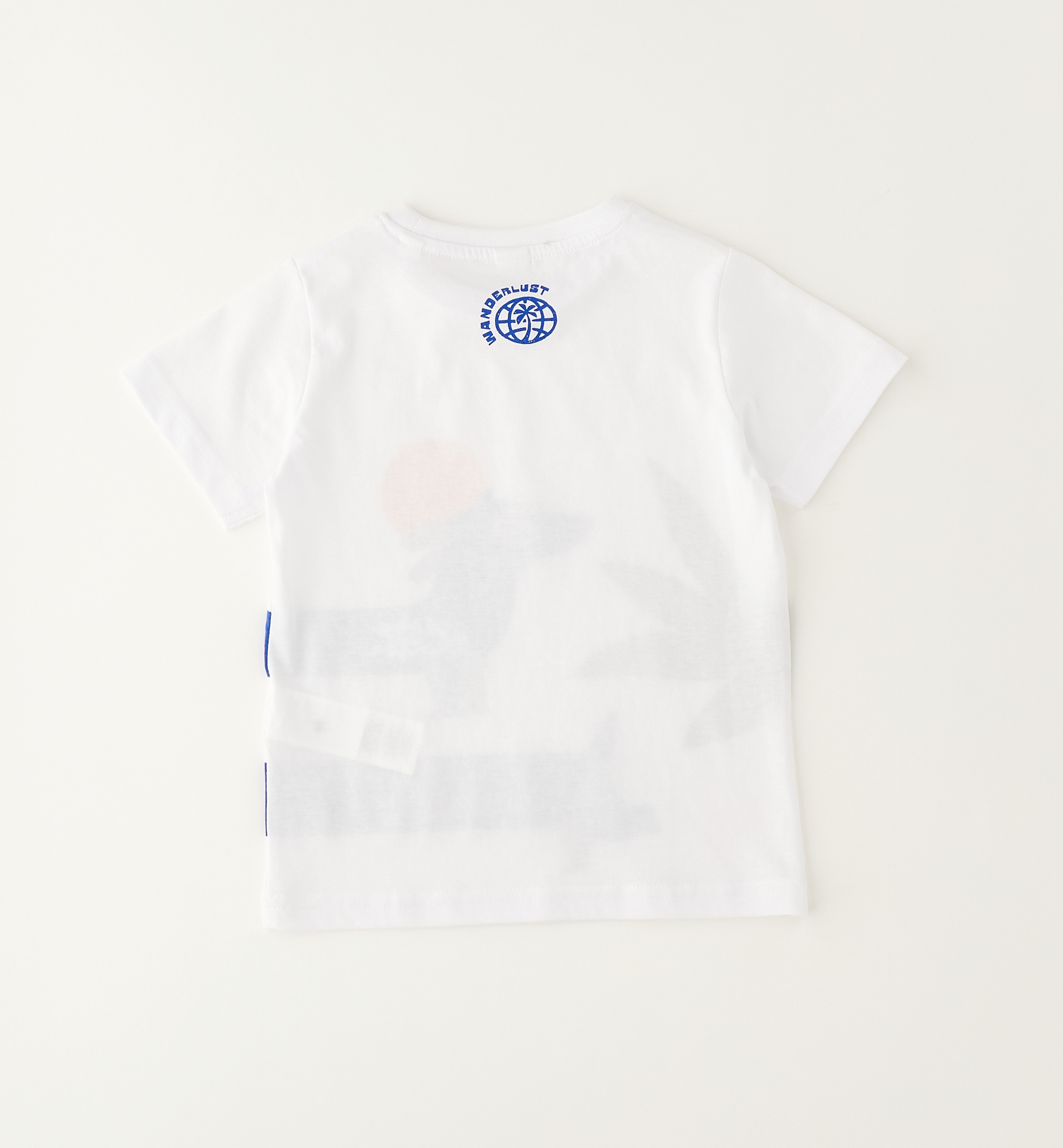 Chlapecké bílé tričko Globe Trotter se psem. Bílé tričko s originálním motivem dlouhého modrého psa, palmou a oranžovým sluncem. Nápis „globe trotter“ podtrhuje cestovatelský styl. Skvělé pro malé objevitele.
