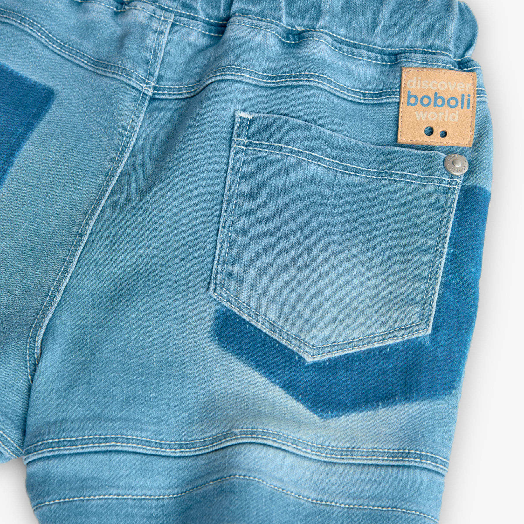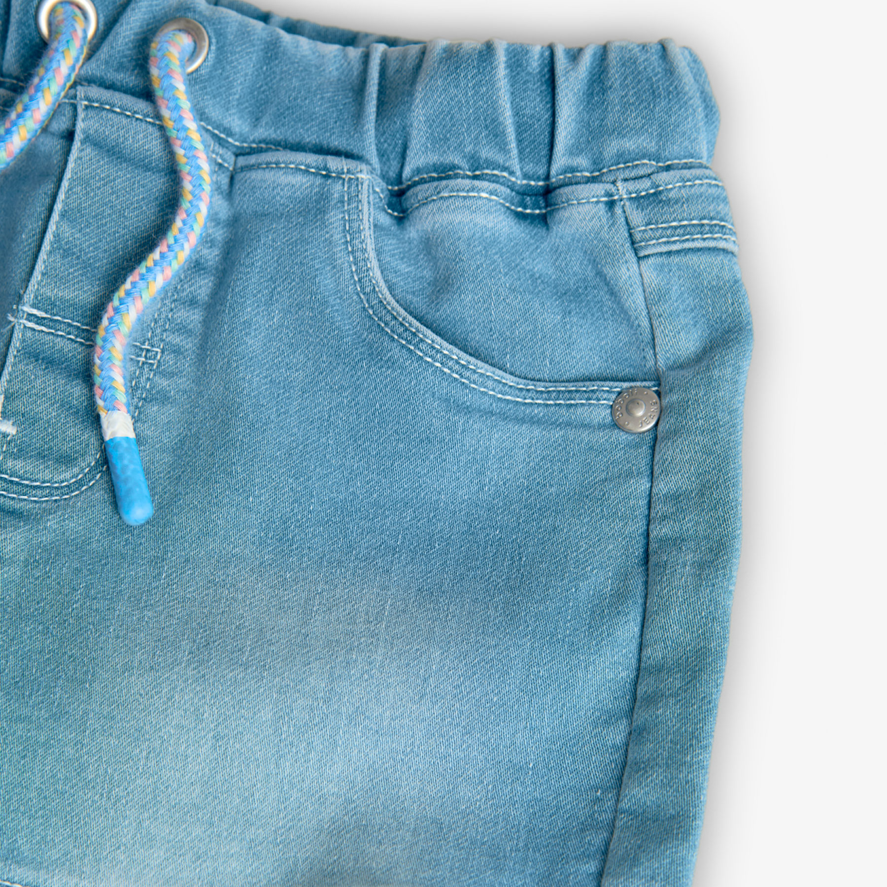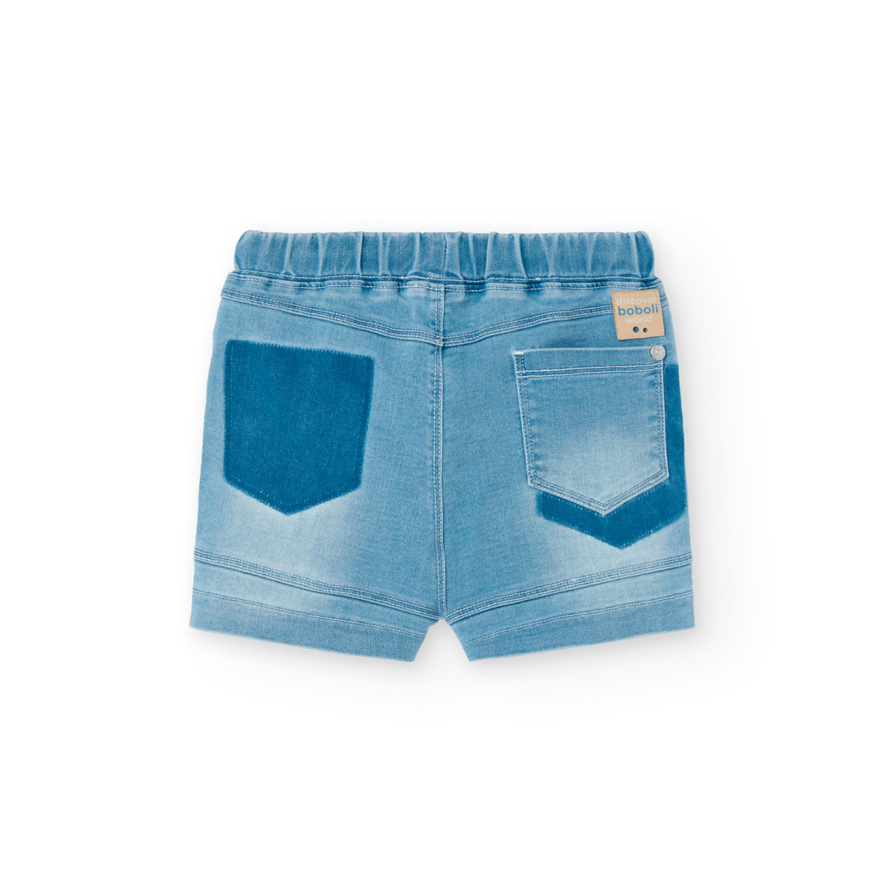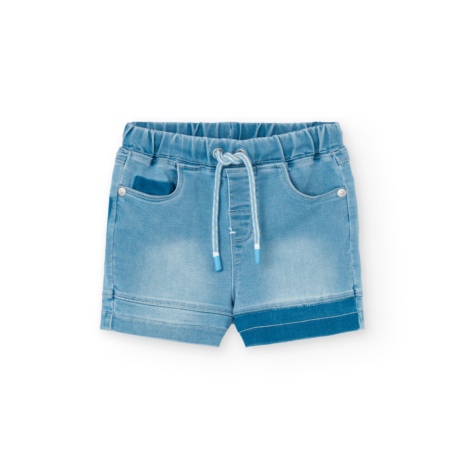 Letní klasika s barevným twistem!, Chlapecké kraťasy od Boboli ze světlého denimu, zakončené tmavě modrým spodním lemem. Elastický pas se šňůrkou a kapsy pro maximální pohodlí. Lehký a měkký materiál pro letní dny.