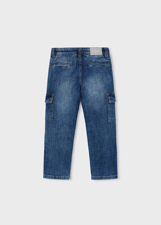 Chlapecké džíny s cargo kapsami. Džínové kalhoty s bočními cargo kapsami pro kluky, kteří mají rádi praktičnost a pohyb. Pohodlný střih umožňuje volnost při hře i běžném nošení do školy.