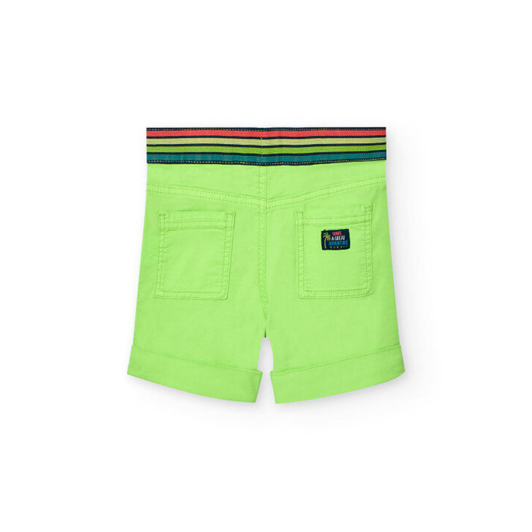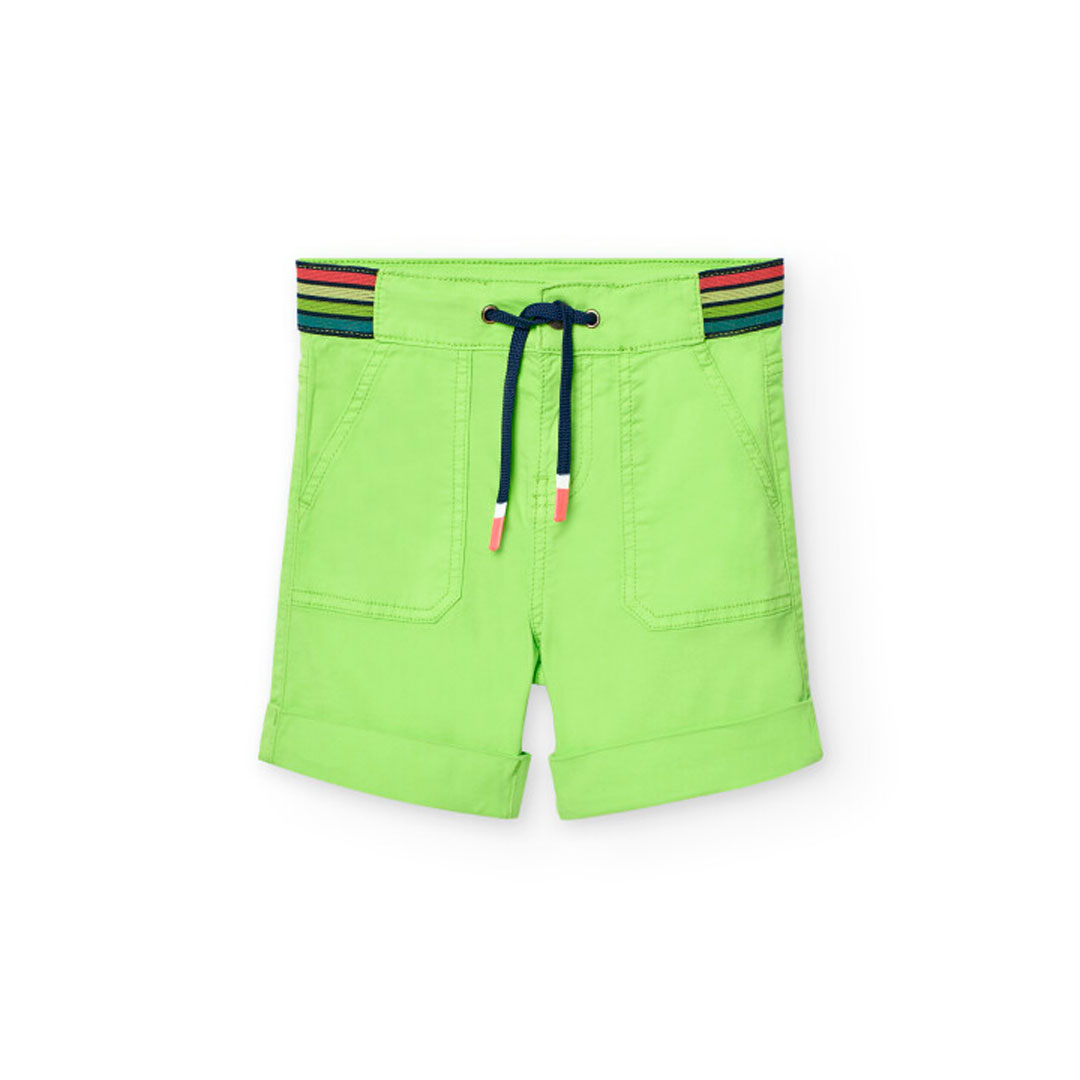 Letní pohodlí. Zelené gabardénové kraťasy se stahovací šňůrkou – pohodlné a ideální pro letní dobrodružství.