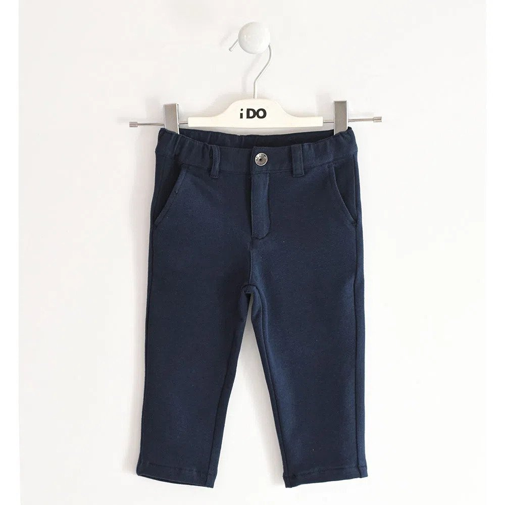Dětské kalhoty IDO ze strečového bavlněného fleecu. Otevírání na zip a knoflík. Nastavitelná velikost pasu s vnitřní štěrbinovou gumou. Model je slim střihu