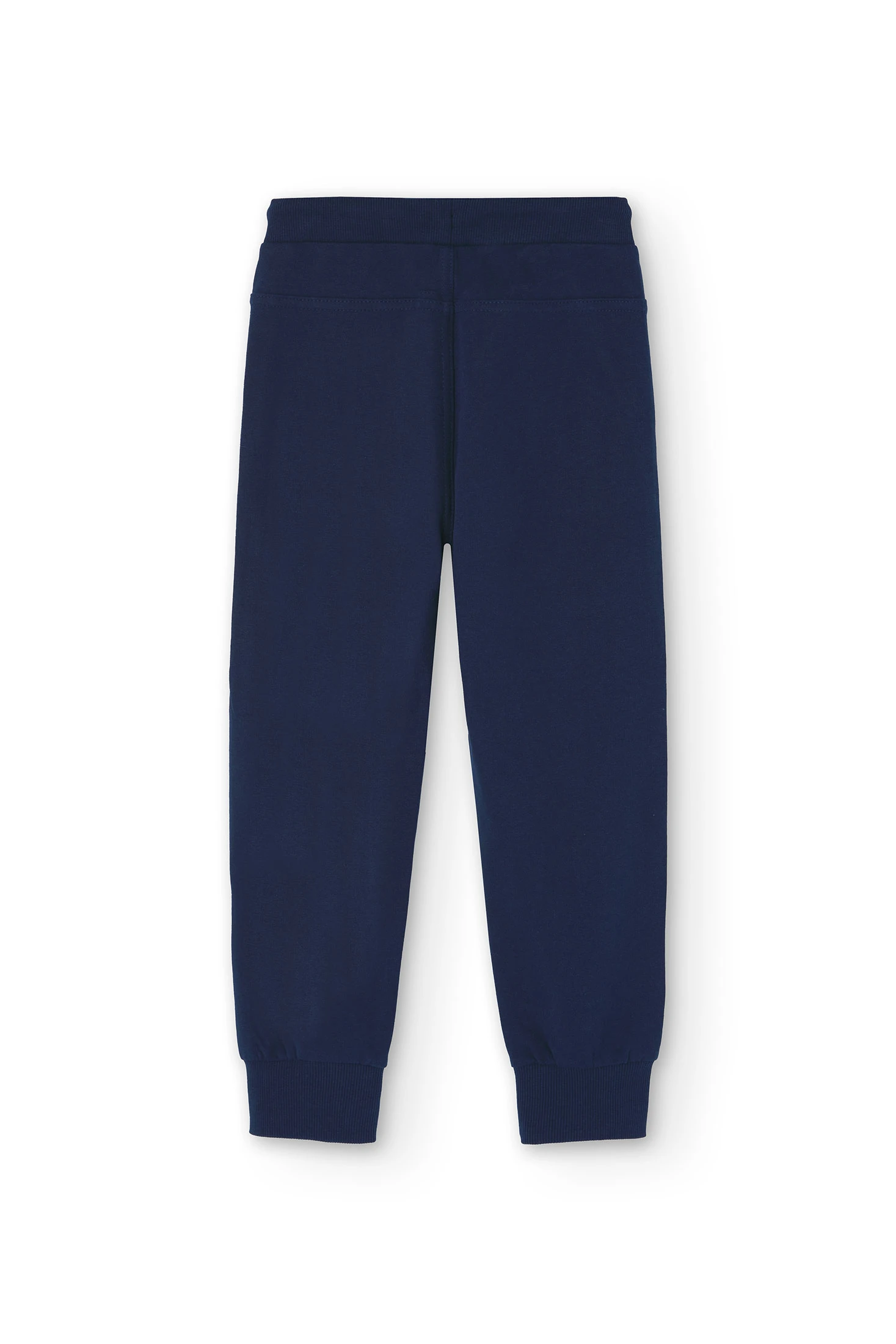 Pohodlné tepláky na každodenní nošení. Chlapecké tepláky v tmavě modré barvě s praktickými kapsami na bocích a pohodlným pasem na gumu se šňůrkou. Ušité z měkké a hřejivé bavlněné teplákoviny, která zajišťuje maximální pohodlí při hře i odpočinku.