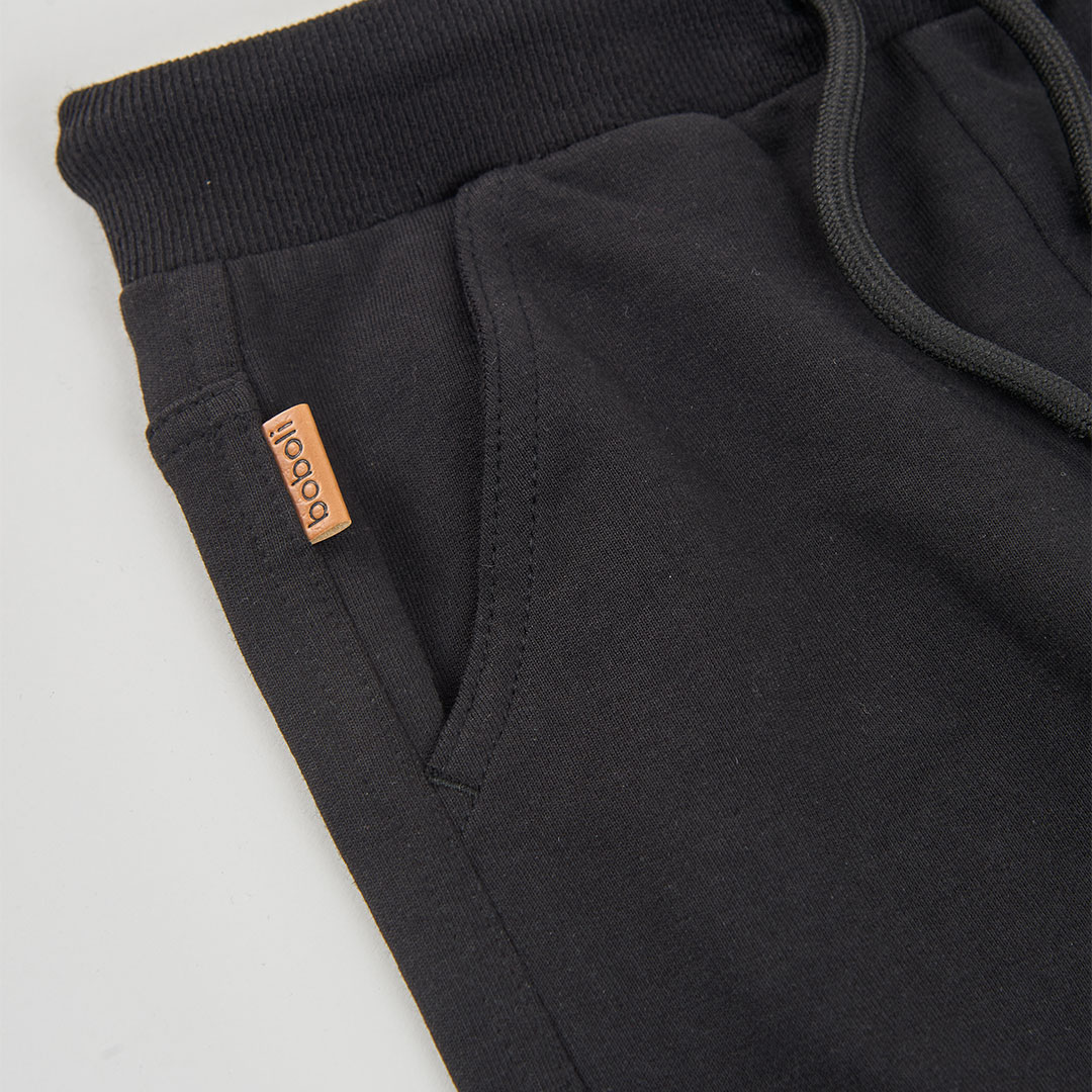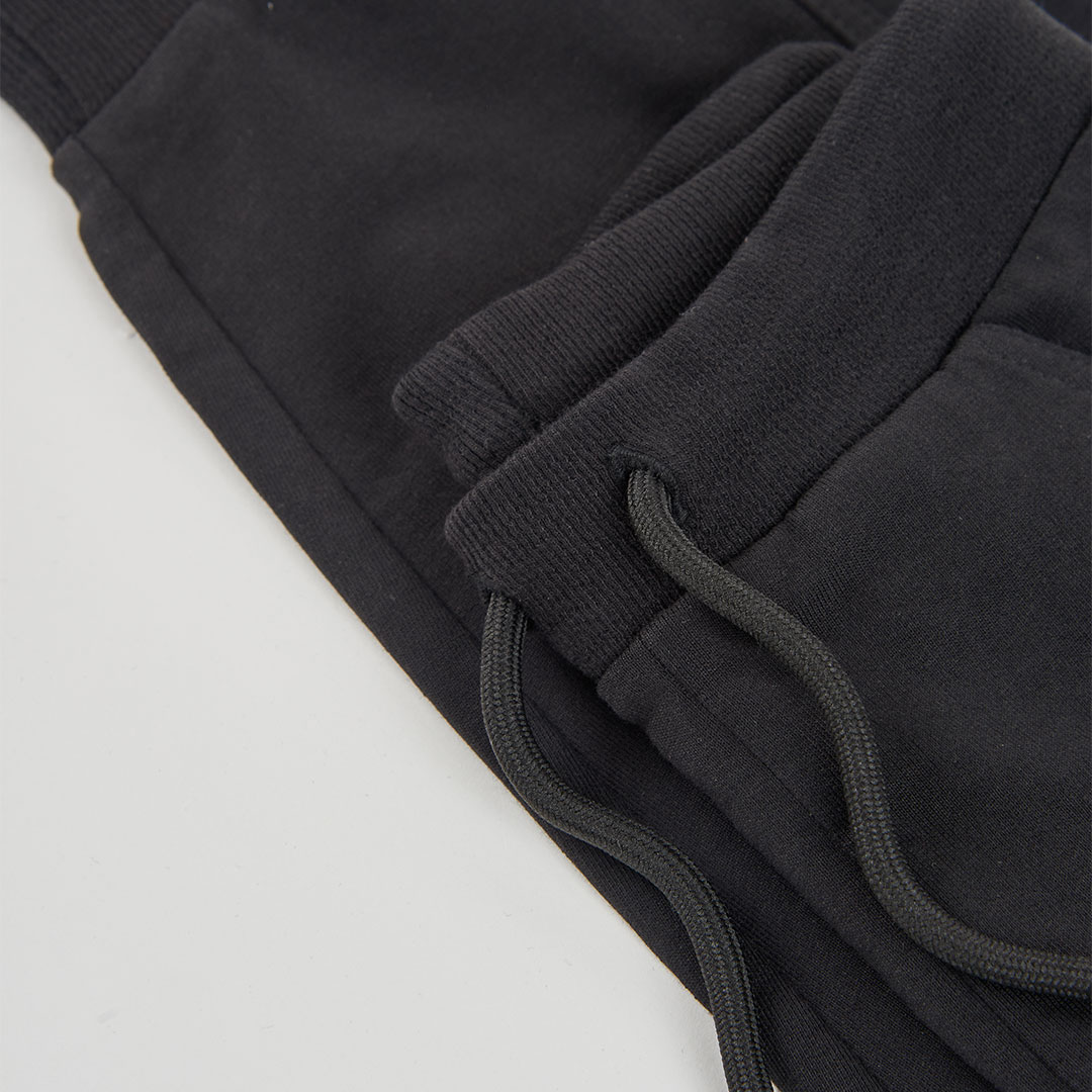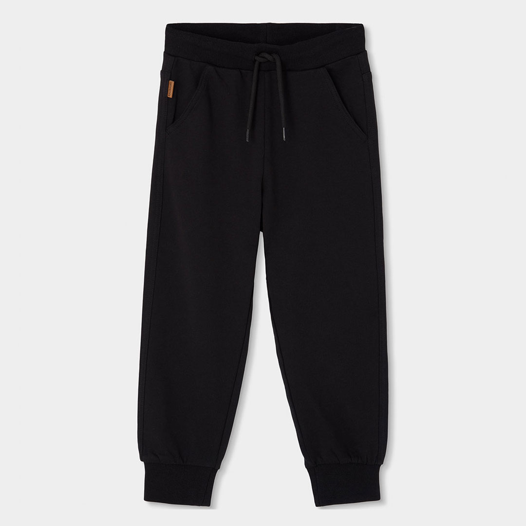 Chlapecké černé tepláky s elastickým pasem. Měkké černé tepláky s pružným pasem a stahováním jsou pohodlné na doma, ven i volný čas.