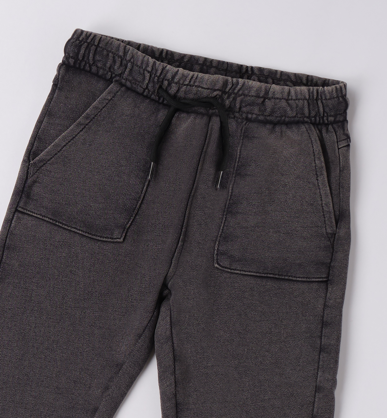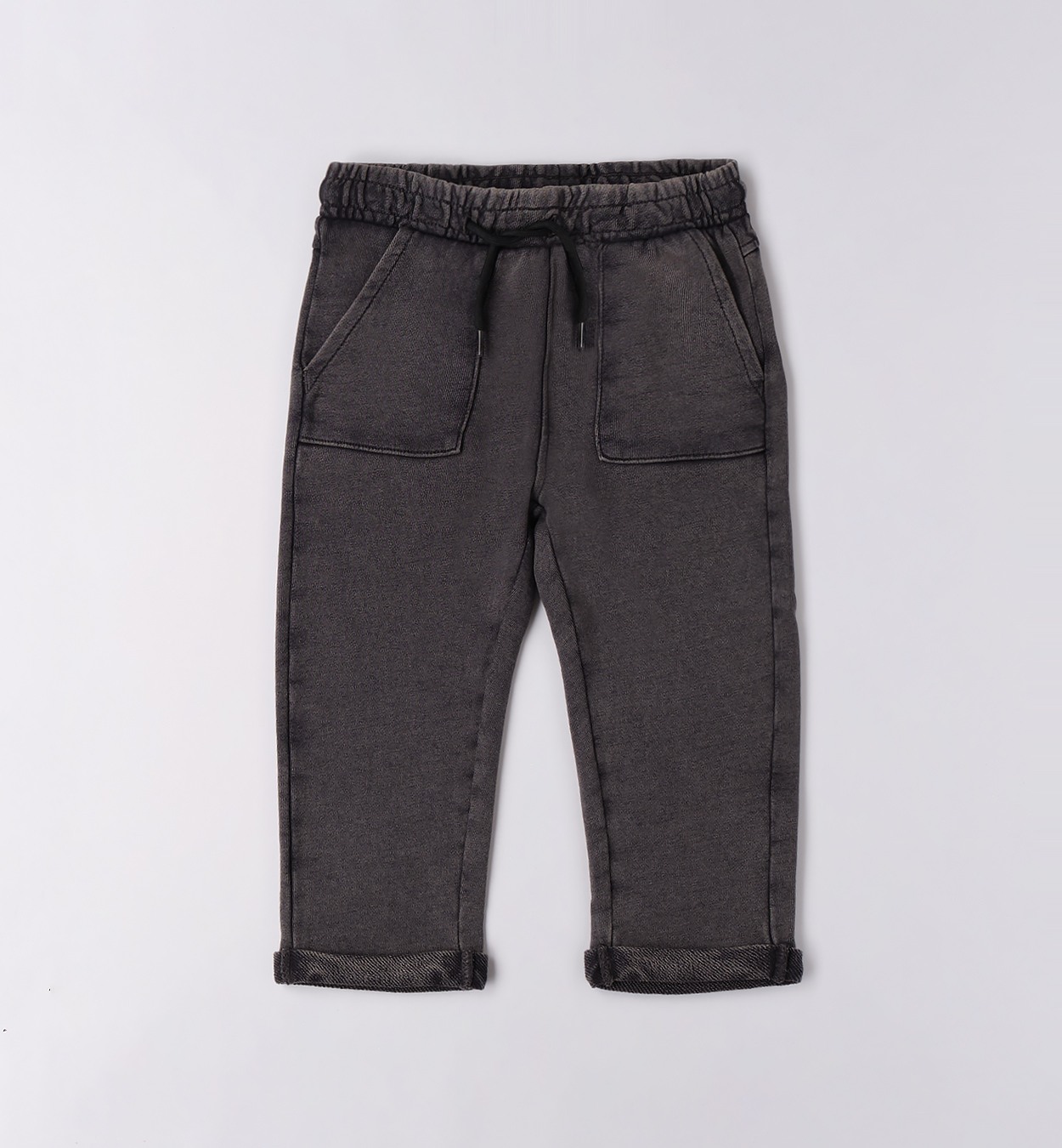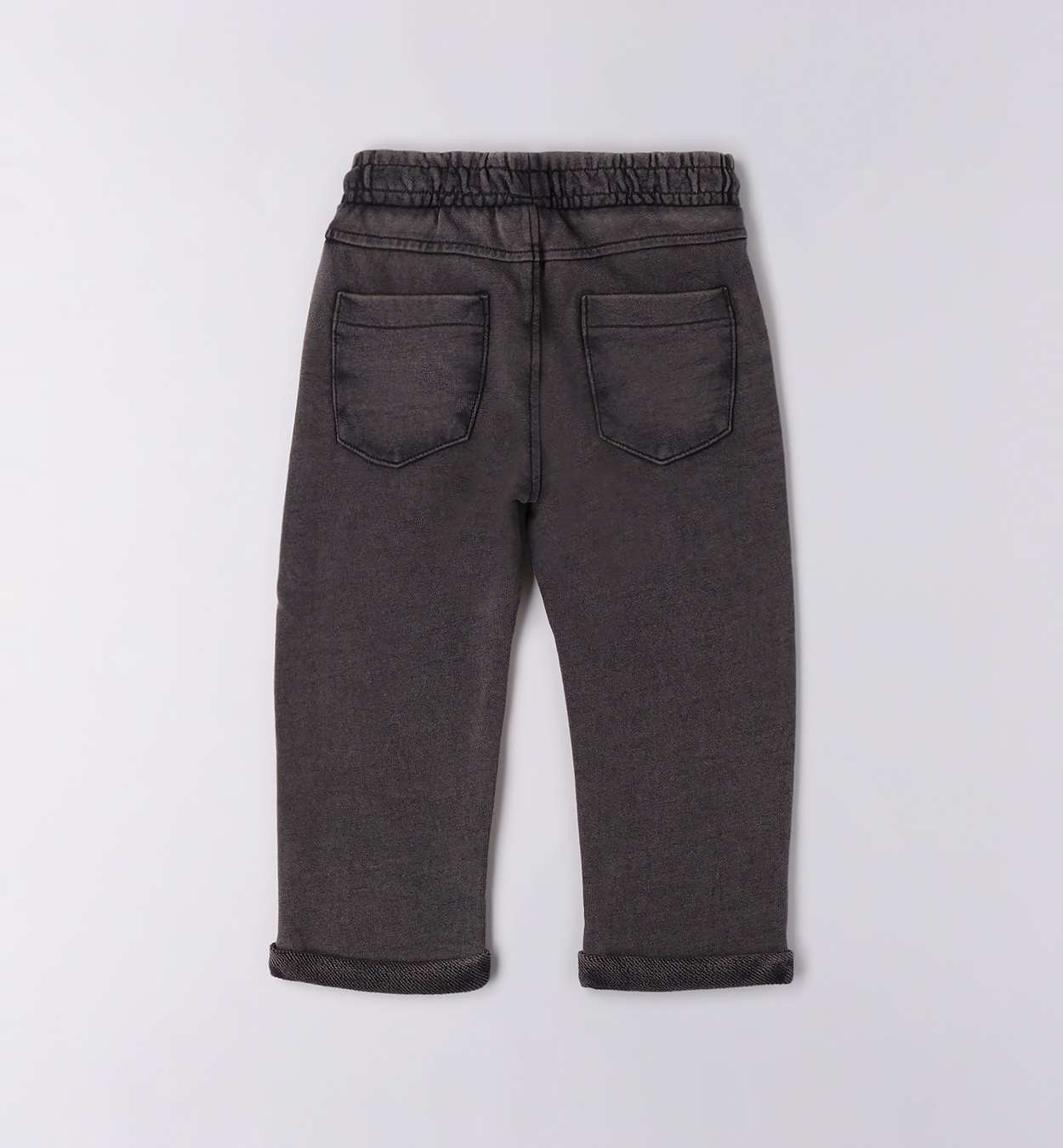 Tepláky v denimu stylu. Pohodlné tepláky v šedém denimu stylu s praktickými kapsami a šňůrkou v pase. Ideální na každodenní nošení, vhodné do školy i na hřiště.
