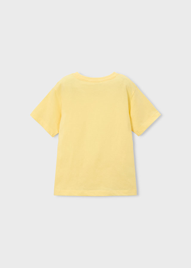 Chlapecké tričko s podmořským motivem. Žluté chlapecké tričko s ilustrací podmořského světa, žralokem a chobotnicí v okénku ponorky, ideální na léto.
