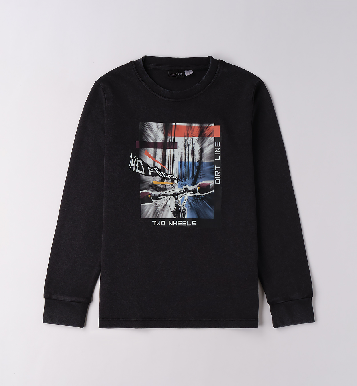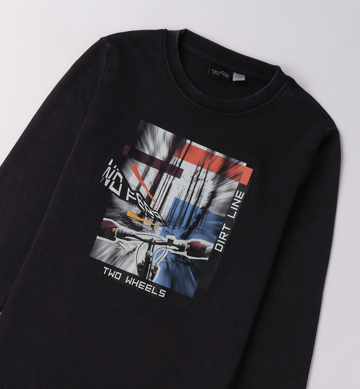 Trendy chlapecký top s motivem. Černé chlapecké tričko s dlouhým rukávem a výrazným cyklistickým potiskem, který dodá outfitu energii a styl. Skvělé pro sportovní nadšence i na běžné nošení, snadno se kombinuje s džíny i tepláky.