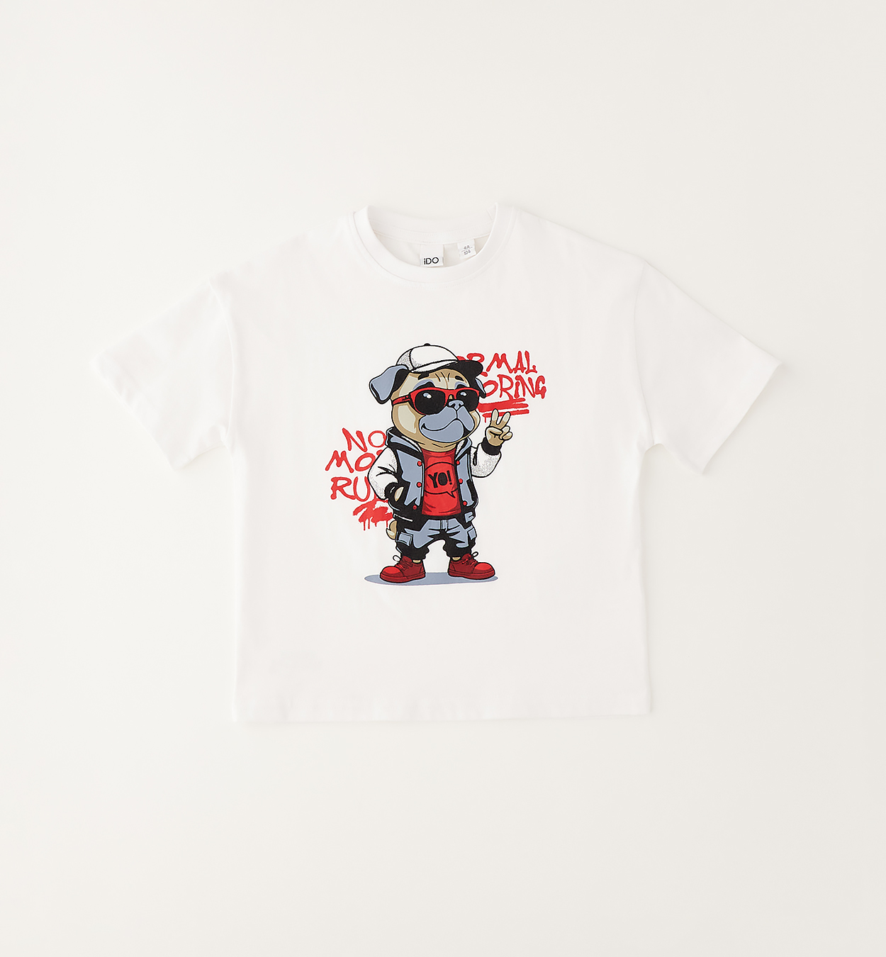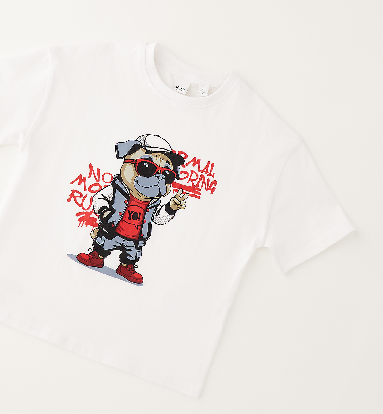 Tričko s potiskem buldoka. Chlapecké bílé tričko s potiskem stylového buldoka, nápisy a výraznými červenými detaily. Skvělá volba k džínům i teplákům.