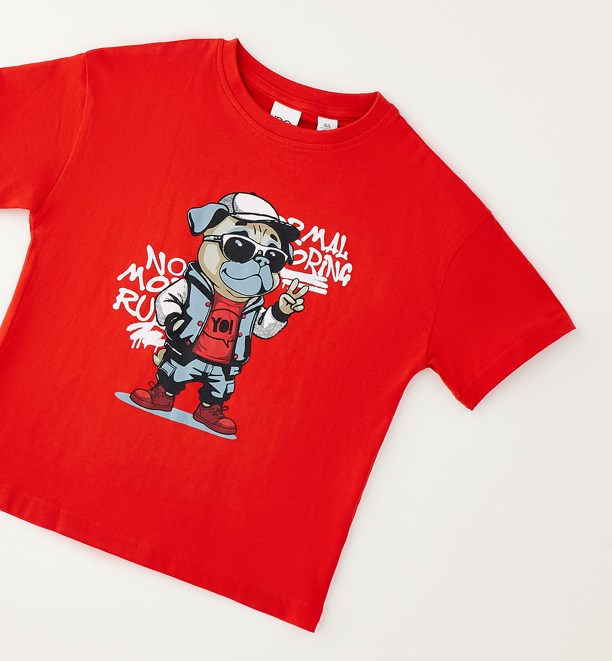 Tričko s potiskem buldoka. Chlapecké červené tričko s potiskem stylového buldoka a nápisy. Výrazný model, který oživí každý sportovní outfit.