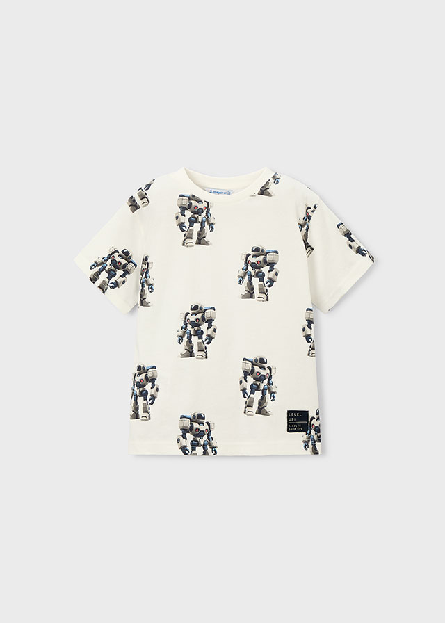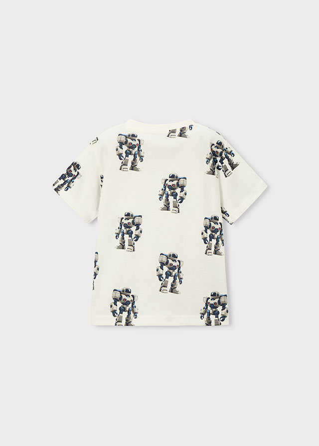 Chlapecké tričko s roboty. Chlapecké tričko s krátkým rukávem s opakujícím se motivem robotů, pohodlné na běžné nošení i celodenní hraní.