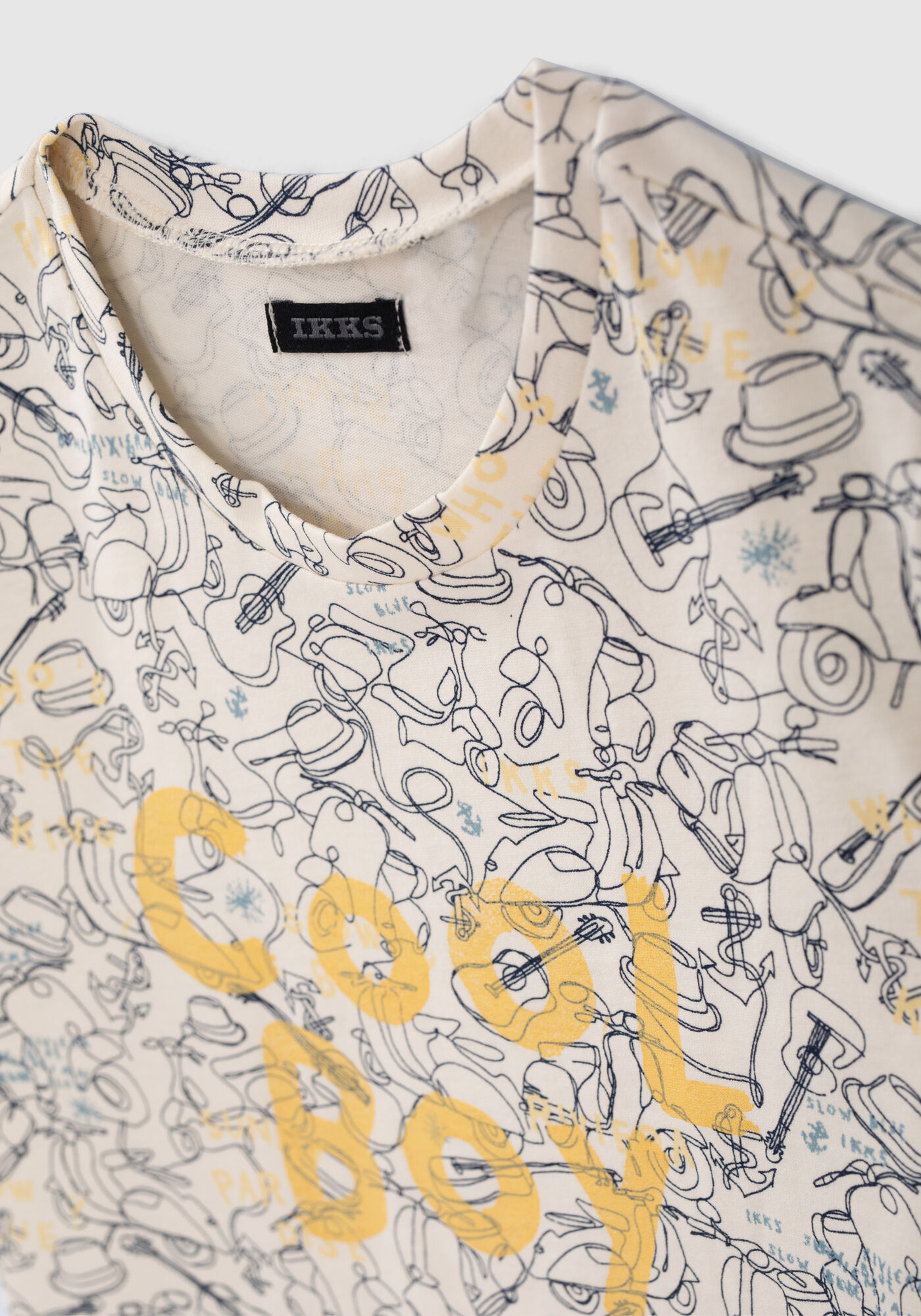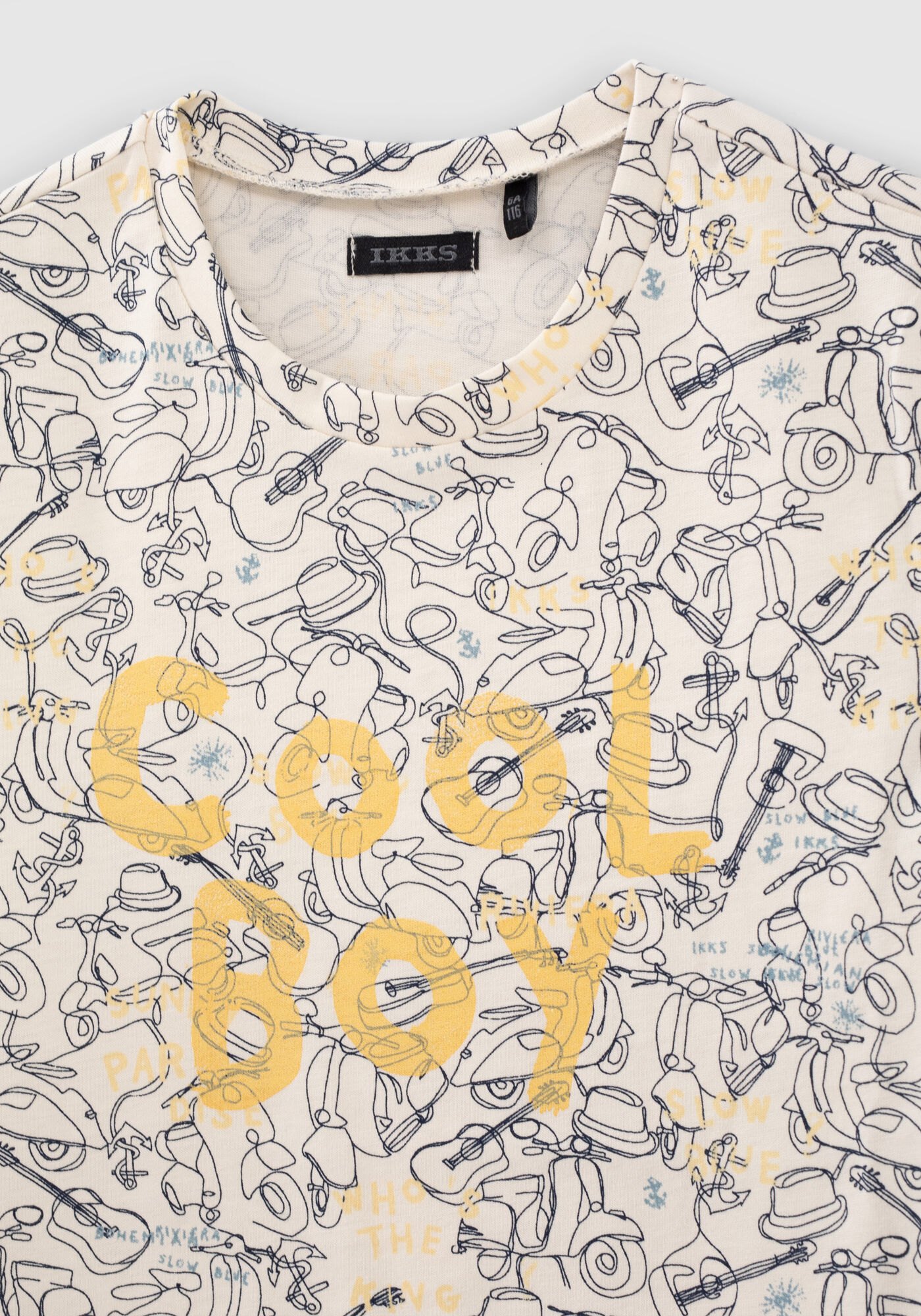 • detail Chlapecké tričko z organické bavlny s celoplošným potiskem perokreseb IKKS