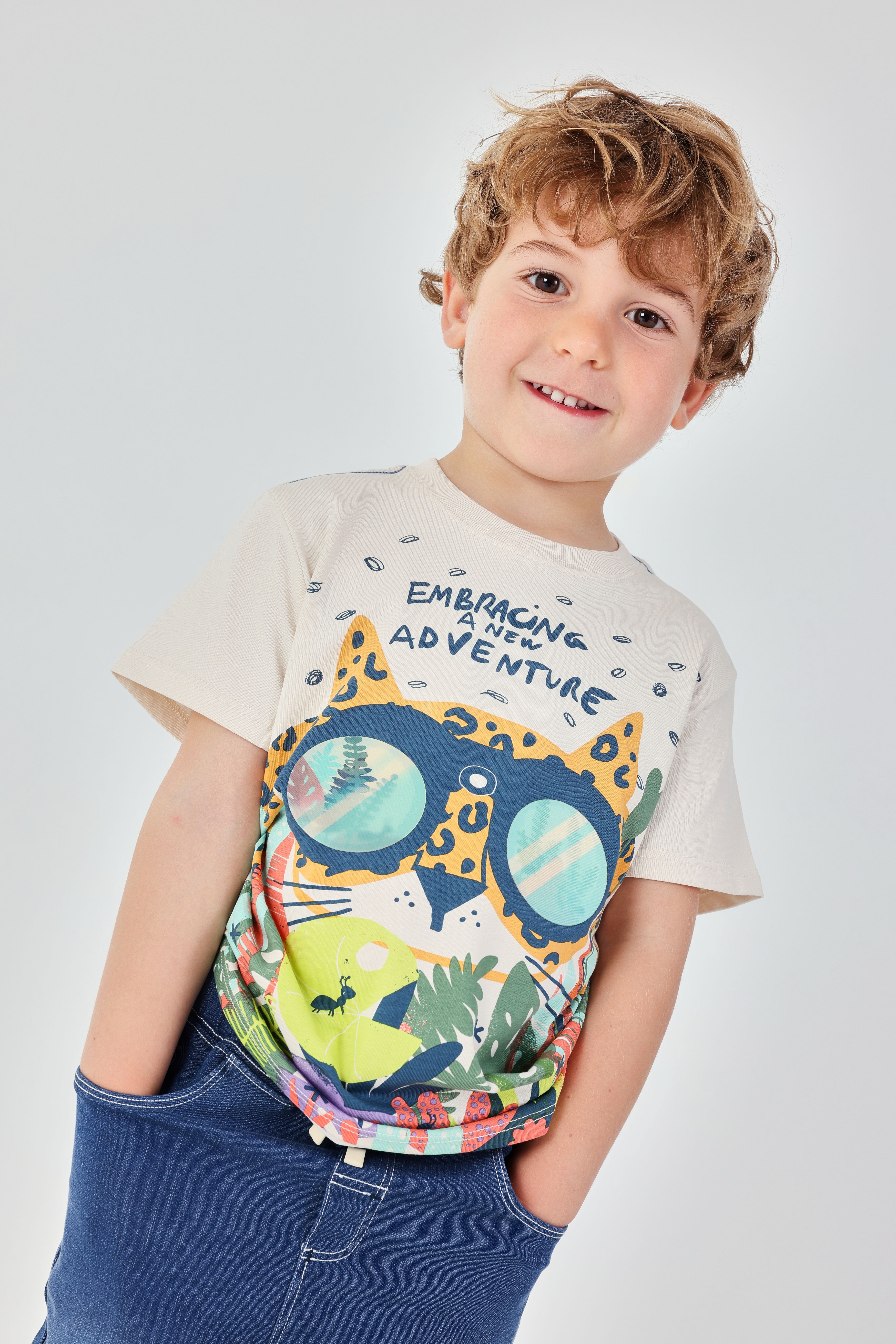 Chlapecké tričko krátký rukáv. Hravé tričko se zvířecím motivem a barevnými detaily. Pohodlné, zábavné a děti ho rády nosí celý den.