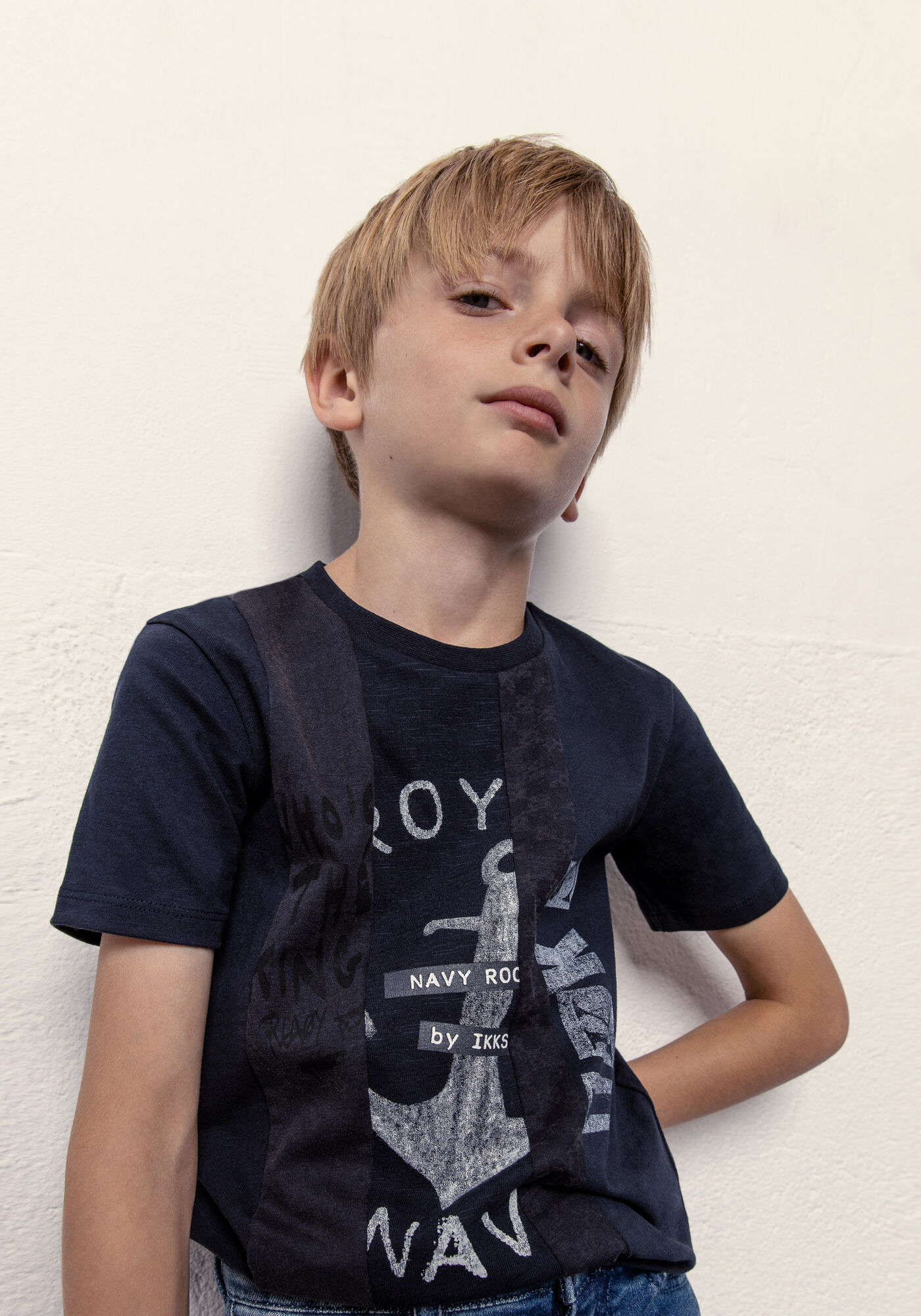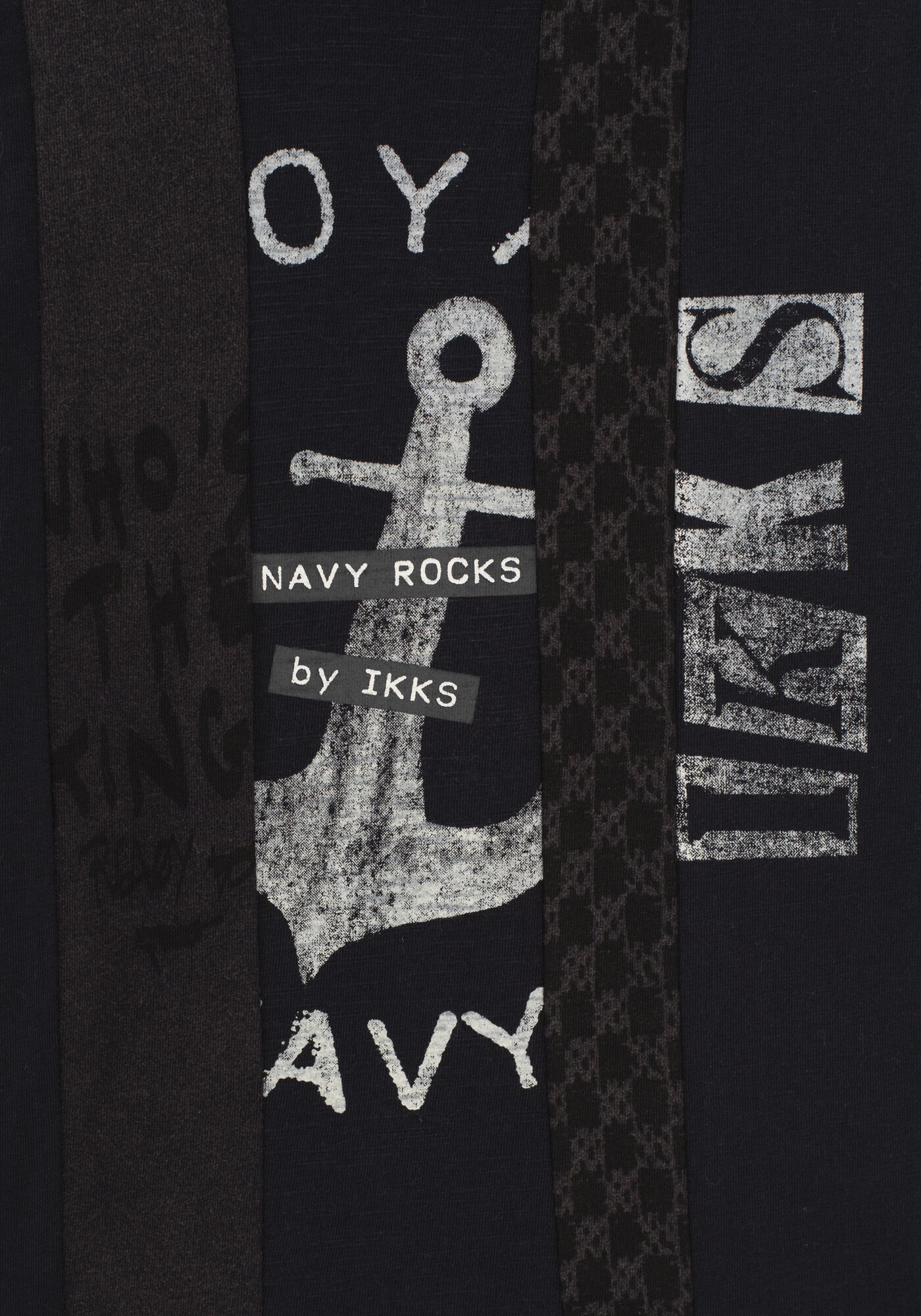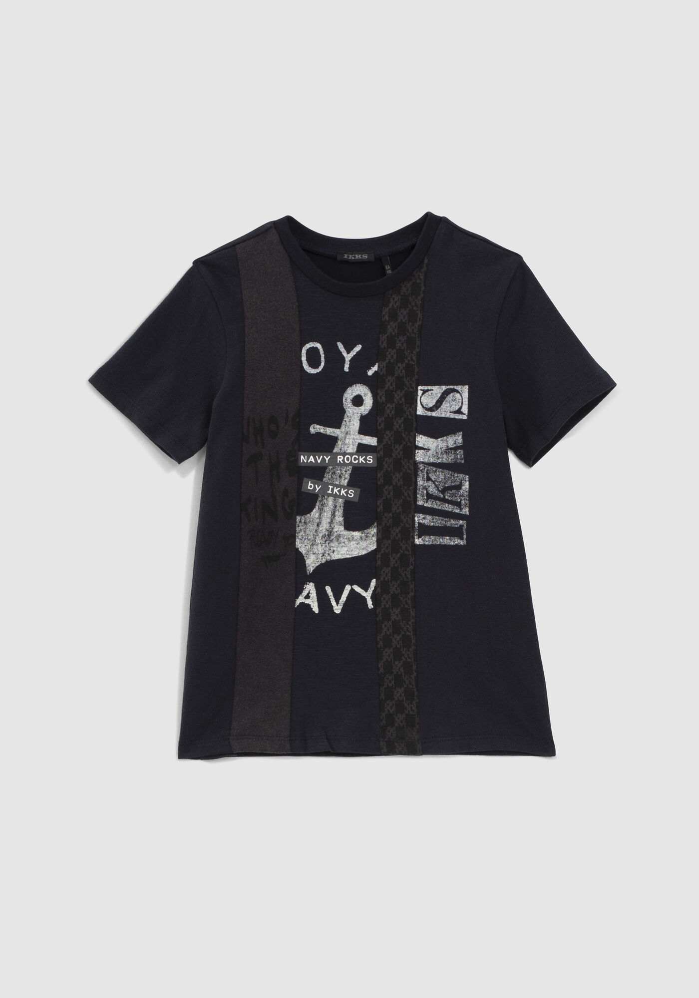 Toto není námořnické tričko. Toto je námořnické rockové tričko se švy z dědictví IKKS. Chlapecké tmavě modré tričko Kulatý výstřih, krátké rukávy Potisk a švy na přední straně