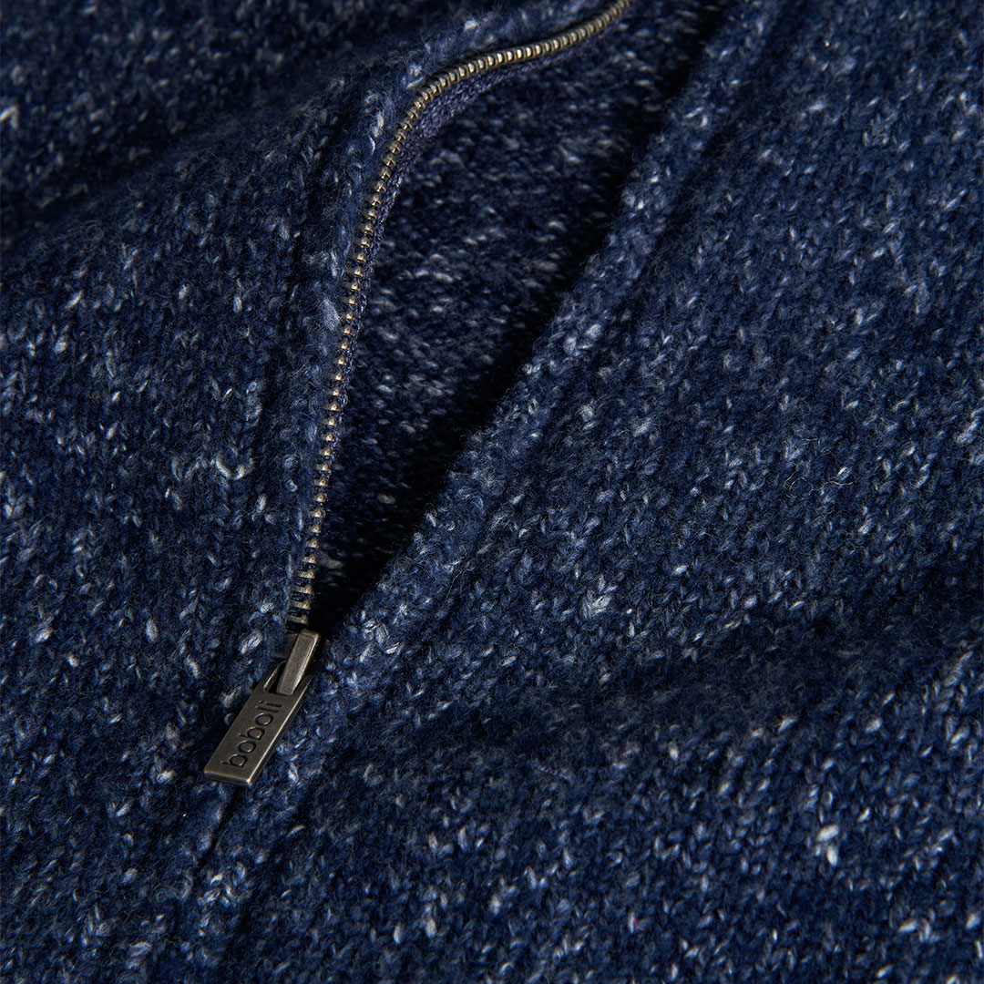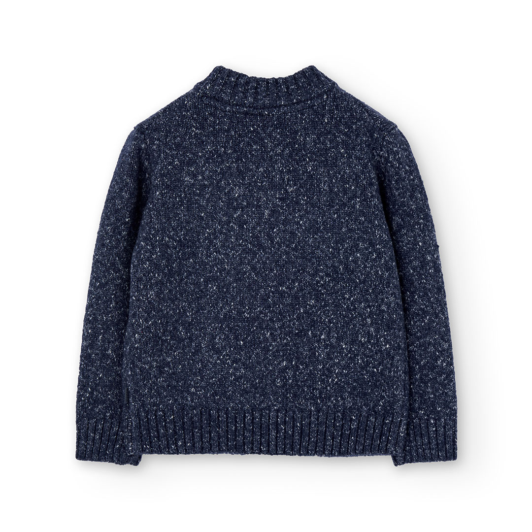Pohodlný svetr na zip pro chladné dny. Pletený chlapecký svetr v tmavě modré barvě s praktickým zipem nabízí skvělou kombinaci pohodlí a stylu. Měkký a hřejivý materiál je ideální pro chladné dny, zatímco decentní melírovaný efekt dodává moderní vzhled.