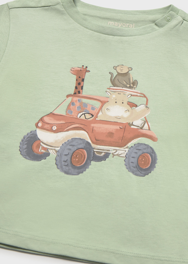 • detail Dětské chlapecké bavlněné tričko s potiskem zvířátek v džípu, zelené MAYORAL