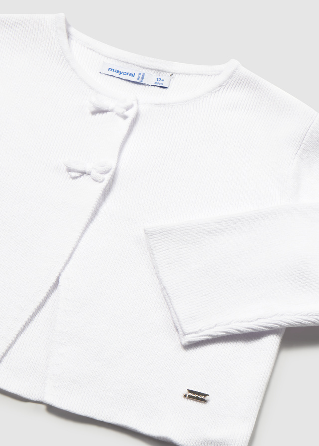 Dětský dívčí pletený kardigan s mašličkami, bílý MAYORAL