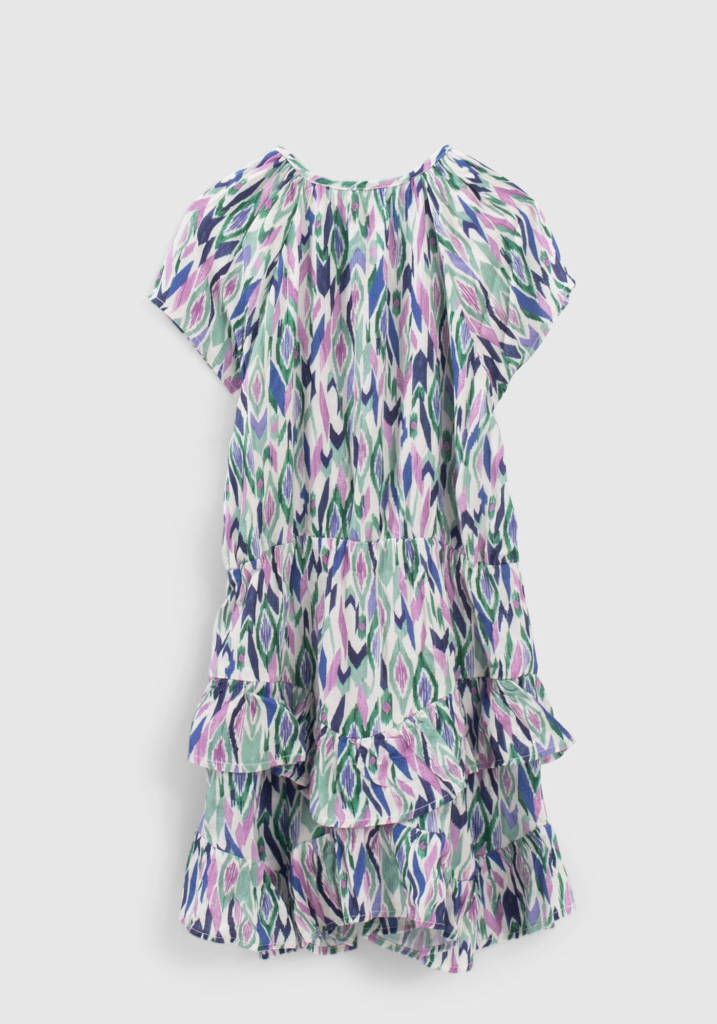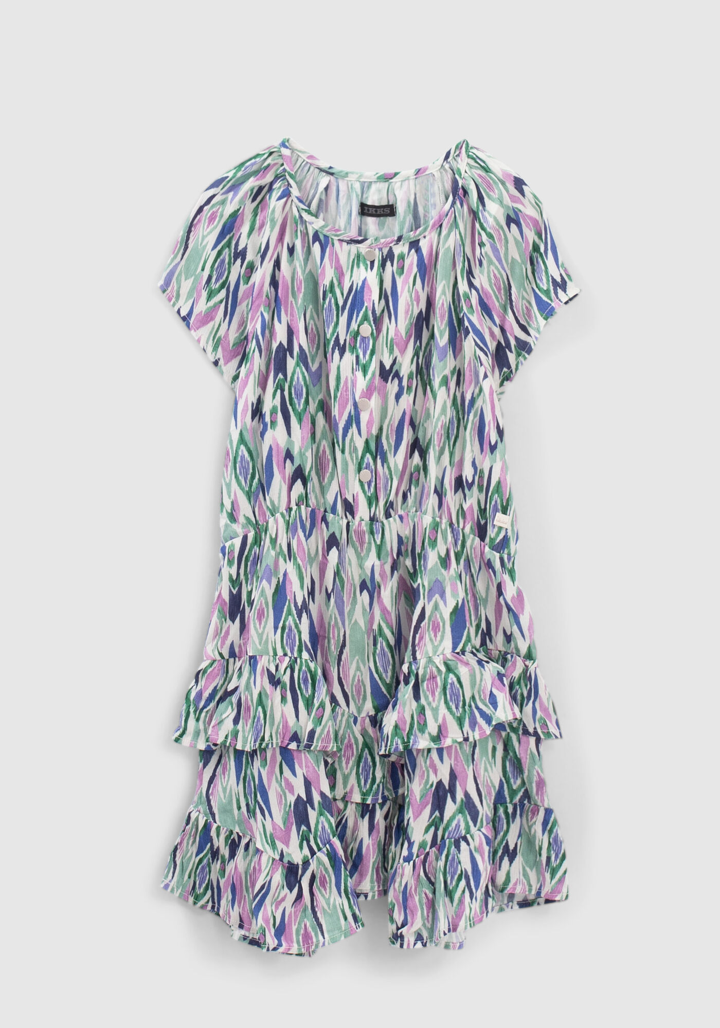 Dívčí barevné šaty s grafickým potiskem - asymetrický lem s volánky IKKS