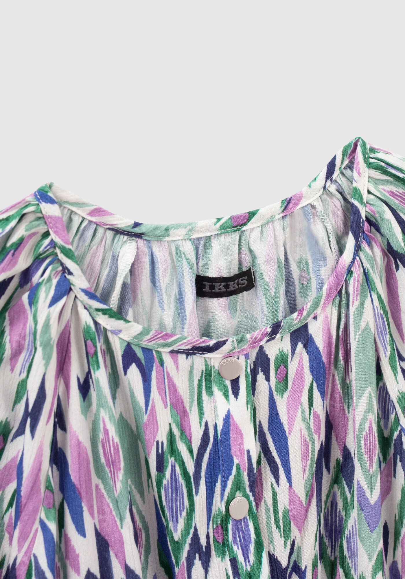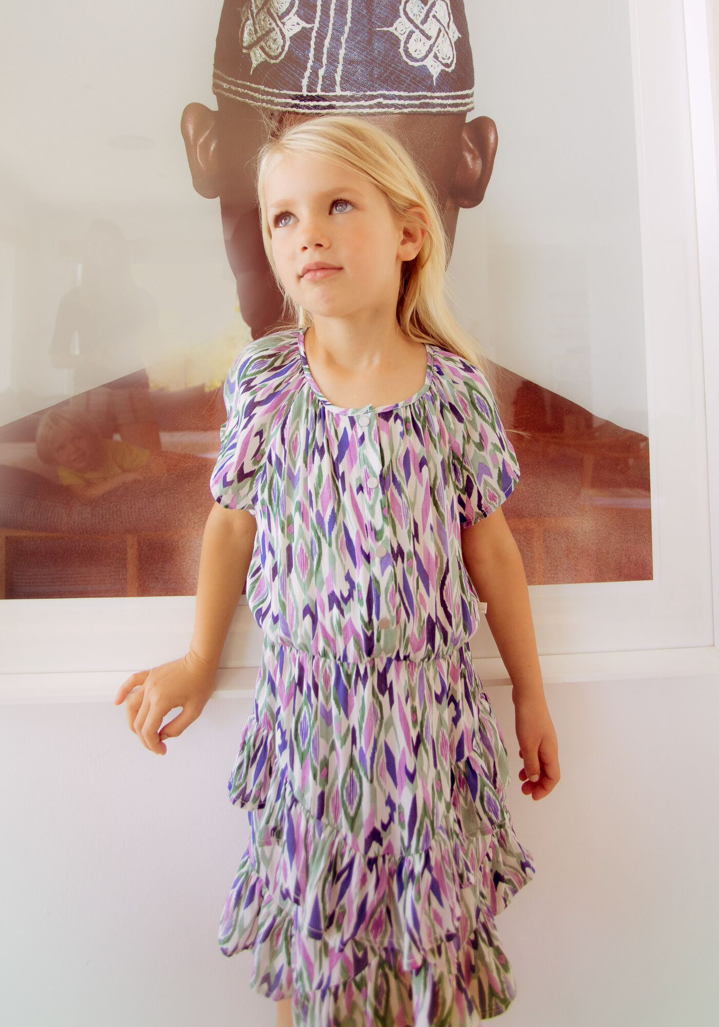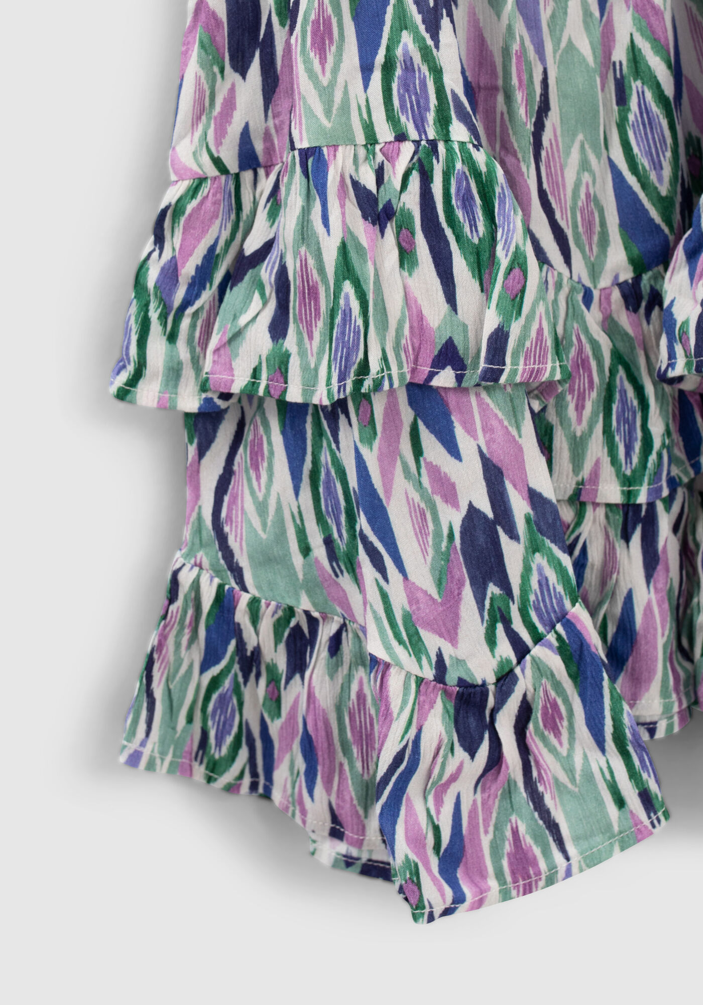 • detail Dívčí barevné šaty s grafickým potiskem - asymetrický lem s volánky IKKS