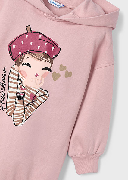 Mikinové šaty s medvídkem pro každodenní pohodu. Pohodlné mikinové šaty v jemné béžové barvě s potiskem usměvavého medvídka v košili. Kapuce a příjemný materiál zajistí teplo i styl. Perfektní do školy i na volný čas.