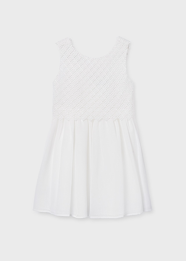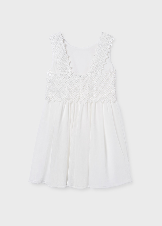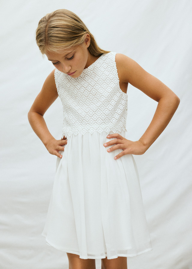 Dívčí bílé šaty . Dívčí slavnostní šaty s jemně zdobeným živůtkem- Guipure krajka. Ideální volba na oslavy, svatby i výjimečné příležitosti.