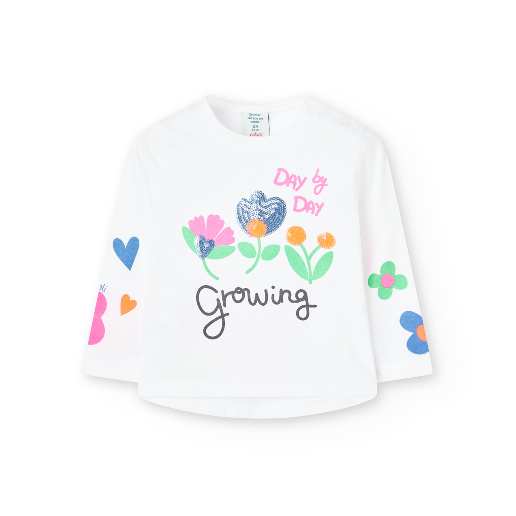 Kouzelný design plný květin a optimismu – ideální pro malé slečny., Tričko s dlouhým rukávem a nápaditým potiskem s flitry. Měkké, pohodlné, hravé.