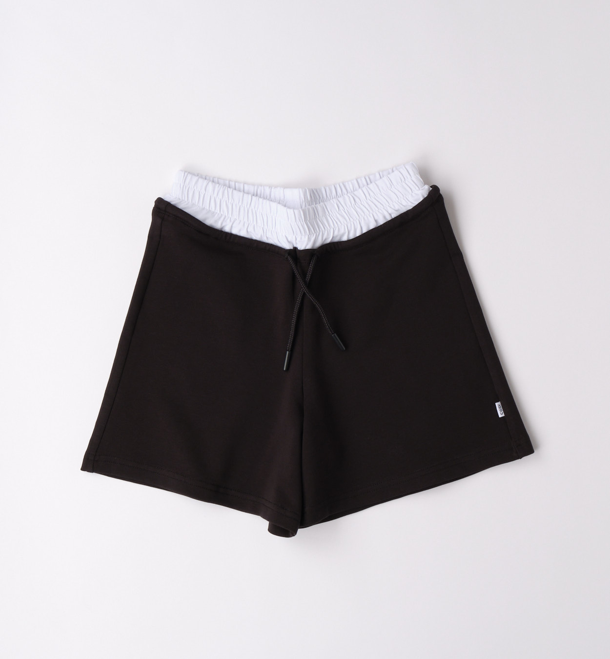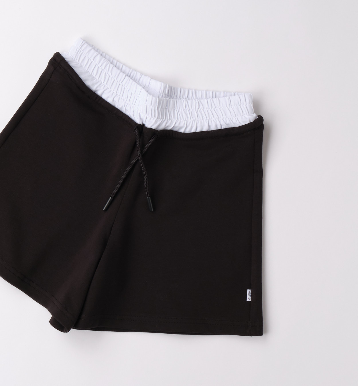 Dívčí černé šortky s kontrastním pasem. Černé dívčí šortky s pohodlným střihem, pružným pasem a kontrastním bílým lemem v pase. Ideální na léto, sport i běžné nošení.