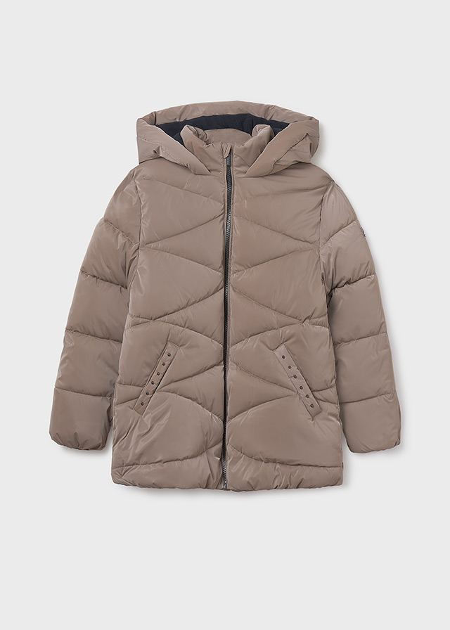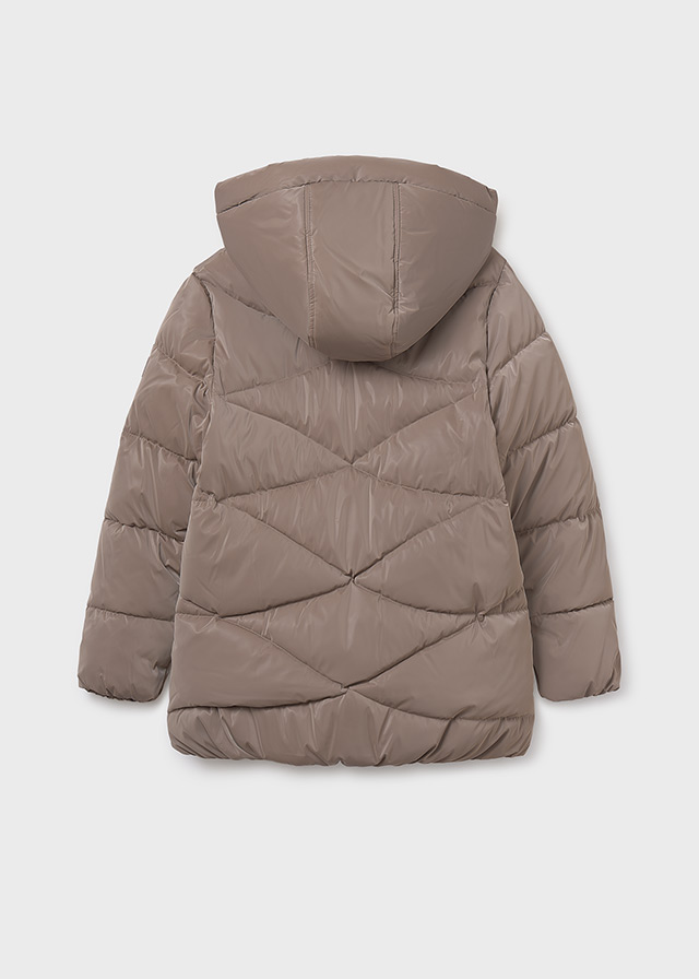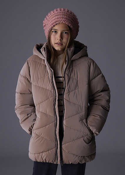 Dívčí zimní bunda s kapucí. Tato prošívaná bunda v hnědé barvě je ideální volbou na chladné zimní dny. Zahřeje díky měkké výplni a podšívce, má praktickou kapuci a hluboké kapsy na patentky. Neutrální barva se skvěle kombinuje s dalšími kousky a bunda je pohodlná i do školky nebo školy.