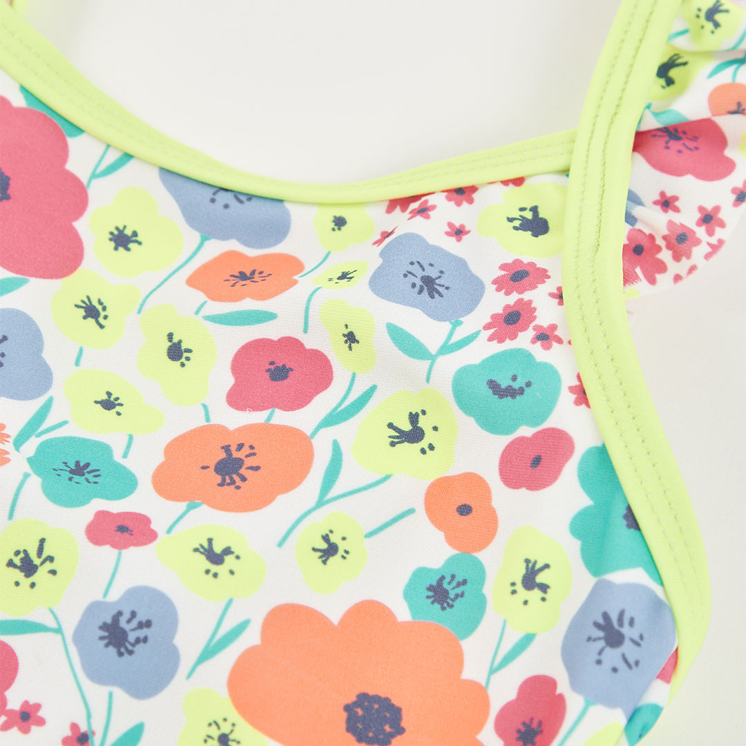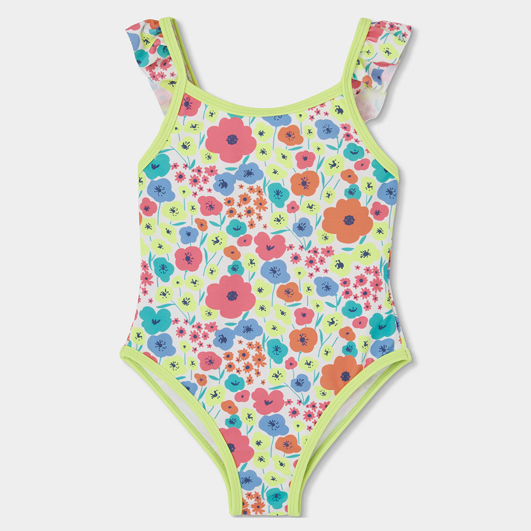 Dívčí jednodílné plavky s potiskem. Jednodílné plavky s veselým květinovým potiskem, které dobře sedí a neomezují pohyb. Skvělé na pláž, bazén i letní dovolené.