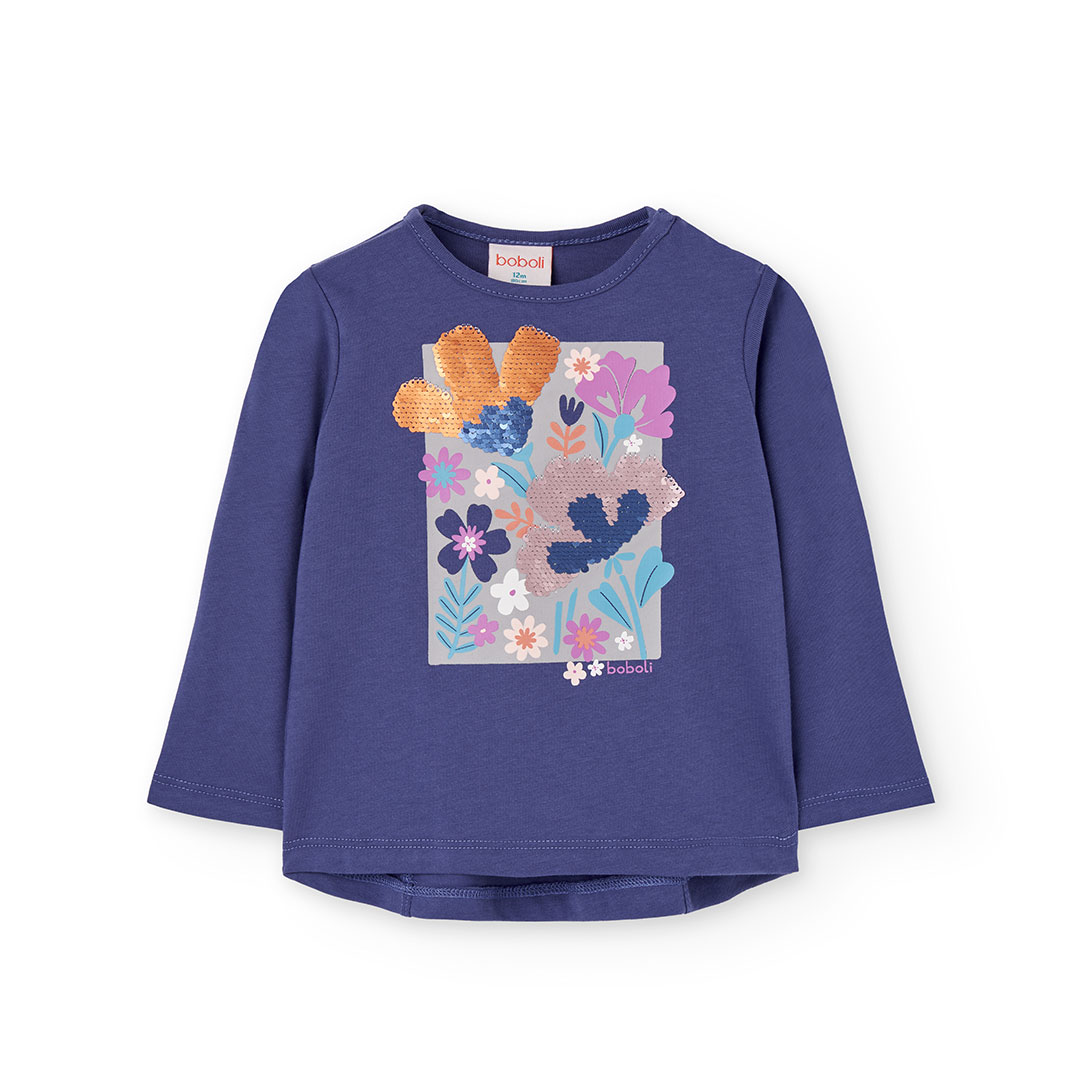 Dívčí tričko s květinovým potiskem a flitry. Stylové dívčí tričko s dlouhým rukávem v modré barvě, zdobené výrazným květinovým potiskem s třpytivými flitry. Originální detail tvoří také volnější zadní část se sklady pro maximální pohodlí. Vyrobeno z příjemného bavlněného materiálu, ideální pro každodenní nošení i slavnostní příležitosti.