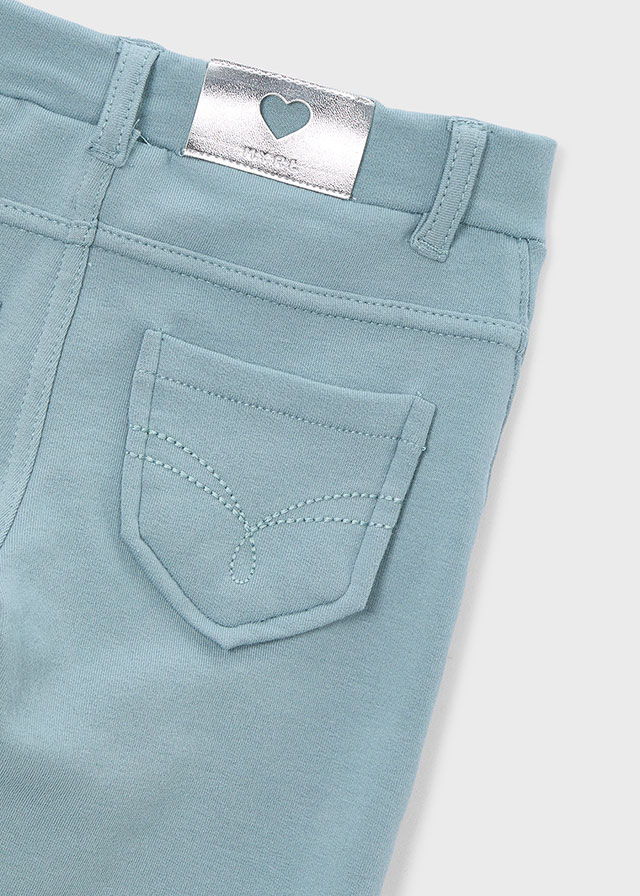 Dívčí slim kalhoty ve světle modré barvě. Dívčí slim kalhoty ve světle modré barvě, vyrobené z příjemného strečového materiálu pro maximální pohodlí. Vypadají jako džíny, ale jsou pružné jako legíny – ideální na školní den i volný čas. Slim střih kopíruje postavu a zajišťuje volnost pohybu.