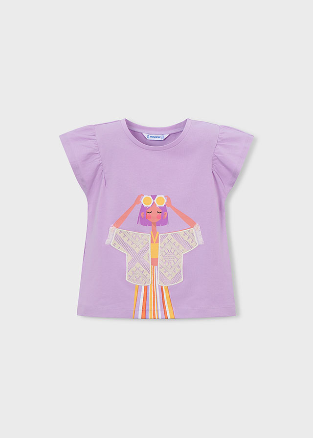 Dívčí tričko s ilustrací postavy. Dívčí tričko s ilustrací postavy v pastelových barvách, lehký materiál a pohodlný střih vhodný na každý den.