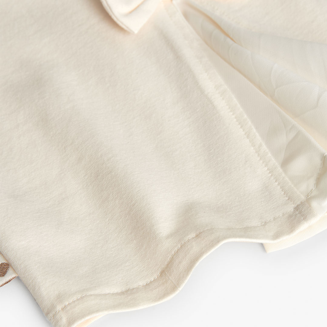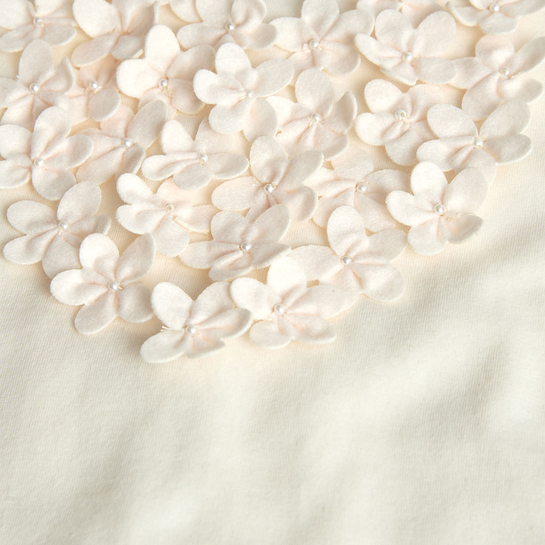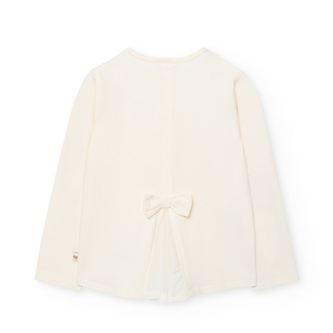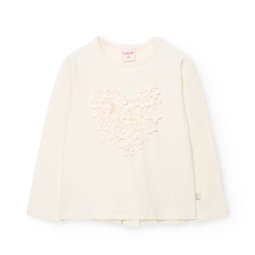 Srdíčkový motiv a roztomilá mašle. Jemné dívčí tričko s dlouhým rukávem okouzlí krásným 3D srdíčkem z květin na přední straně a roztomilou mašlí vzadu. Krémová barva, měkký materiál a originální detaily dělají z tohoto kousku ideální volbu na každý den i speciální příležitosti. Skvěle se kombinuje s kalhotami i sukní a snadno si získá srdce každé malé slečny.
