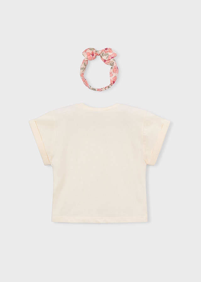 Dívčí tričko s ilustrací dívky a čelenkou. Dívčí tričko v krémovém odstínu s ilustrací dívky v šátku a ladící látkovou čelenkou, ideální na každodenní nošení.