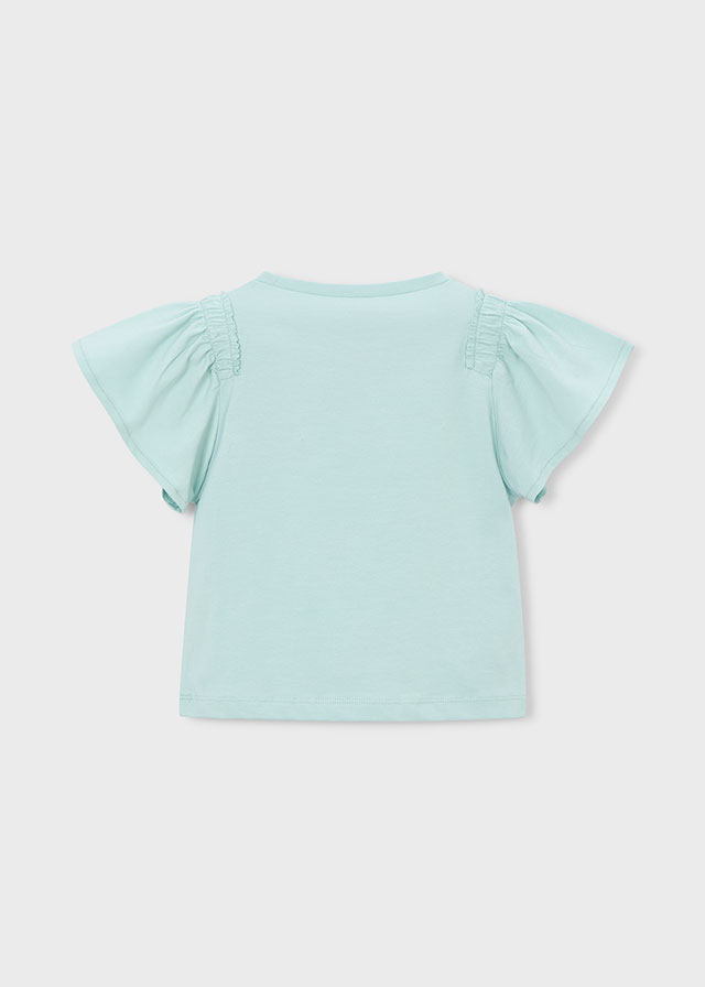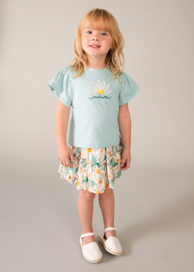 Dívčí tričko s květem a nápisem. Dívčí tričko s krátkým rukávem zdobené vyšitým květem a jemným nápisem, vhodné na běžné nošení, do školky i na klidné letní dny.