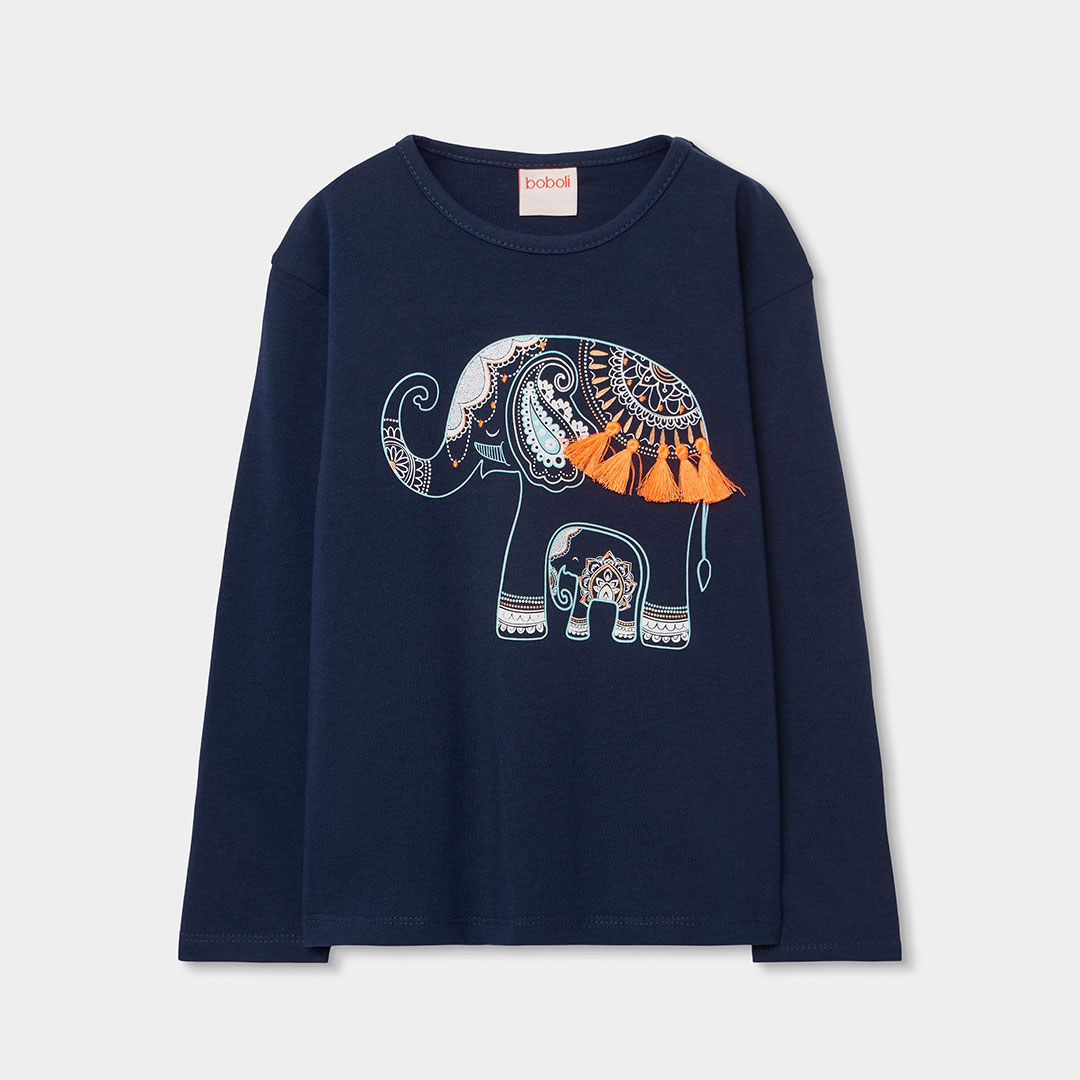 Dívčí tričko s dlouhým rukávem. Tričko s motivem slona a jemnými detaily působí originálně. Pohodlný střih a příjemný materiál zajišťují komfort při celodenním nošení.